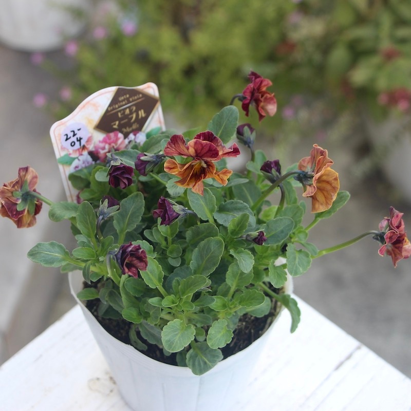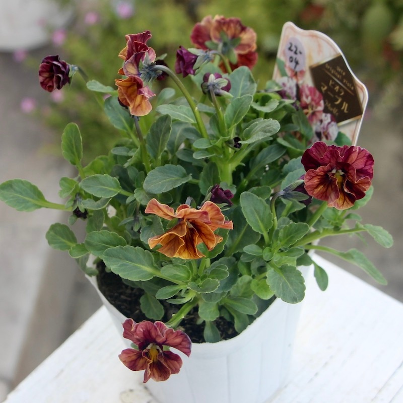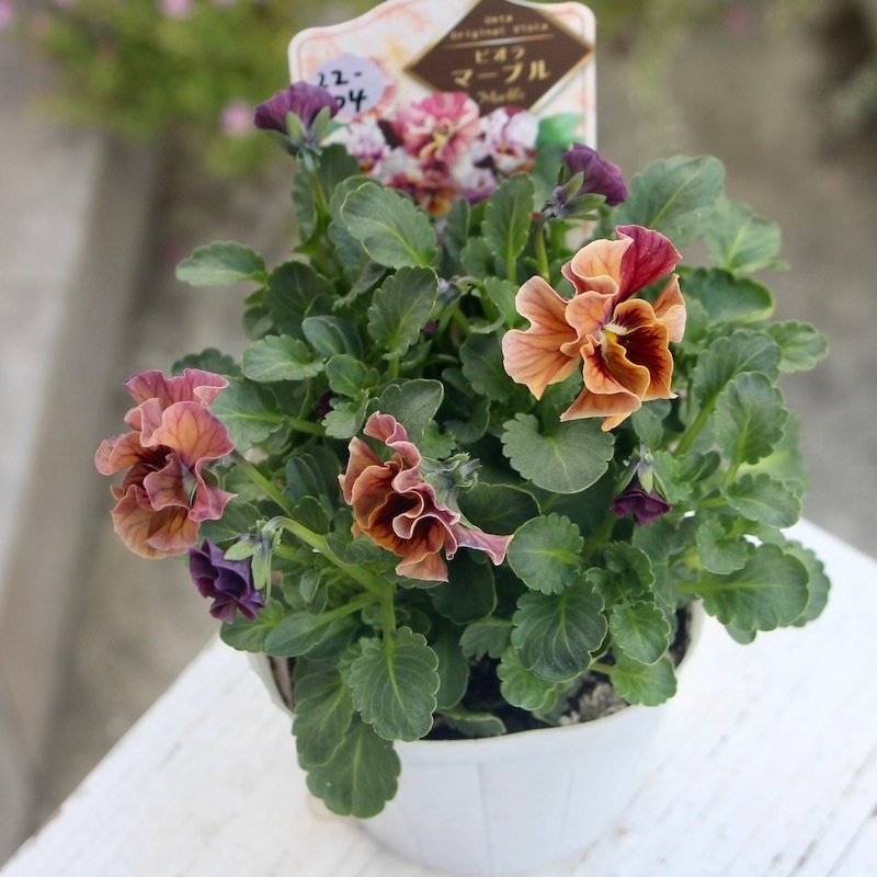 風散歩では、まだ名前の無い植田さんの試作品ビオラ「No.93」や「No.94」として先行販売し、その後に「マーブル」という名前で世に出たものです。 先行販売からずっと大人気の品種です。 その理由は「来年も欲しい」とリピートされる方が多いから。