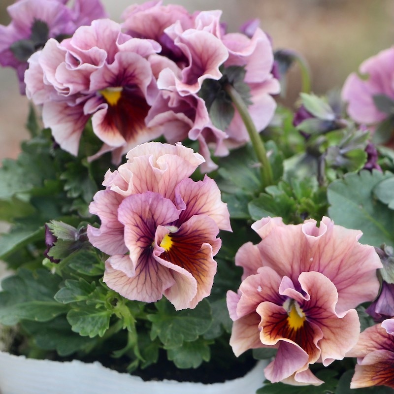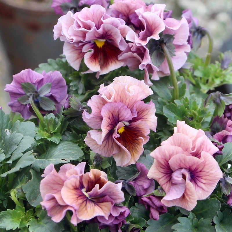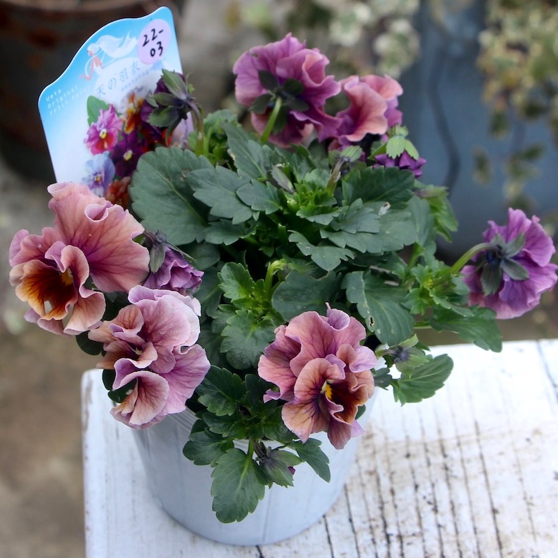 うえたさんがプロデュースされた何とも微妙な色合いが素敵なフリル咲きミニパンジーです。