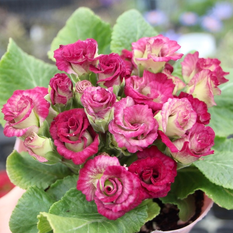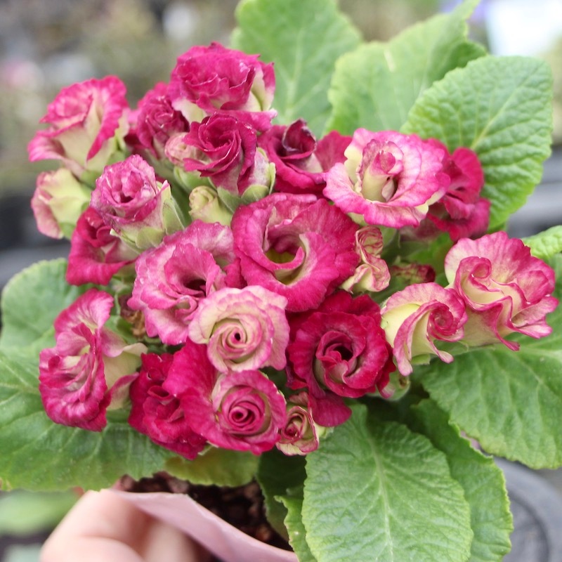 色幅があり過ぎて色分け困難な品種ですが^^; とりあえず過去画像と睨めっこして品番をつけました♪ 早春の代表的な花の一つ「プリムラ・ジュリアン」ですが、その中でも特に立体感のある花が人気の「バラ咲きタイプ」です。