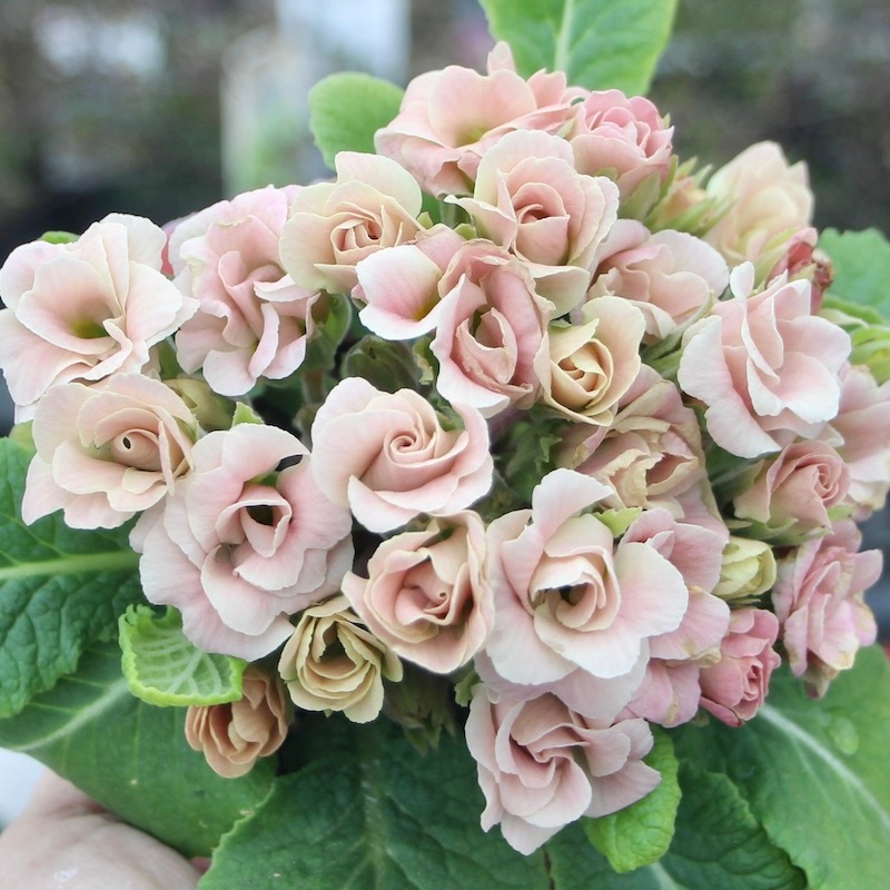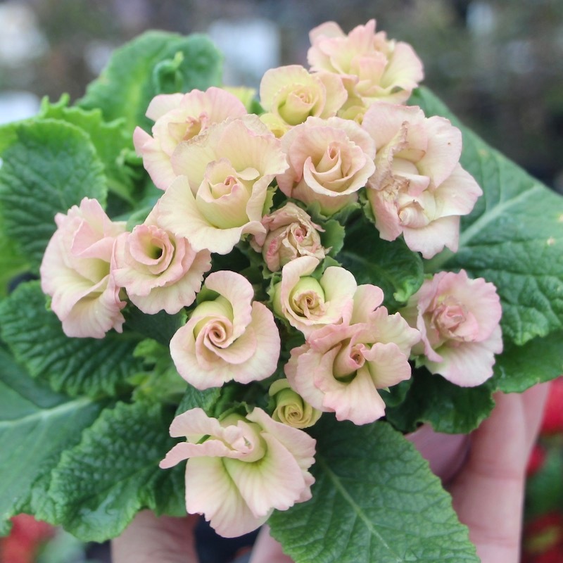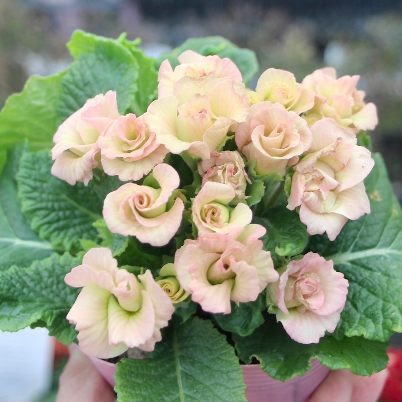早春の代表的な花の一つ「プリムラ・ジュリアン」ですが、その中でも特に立体感のある花が人気の「バラ咲きタイプ」です。