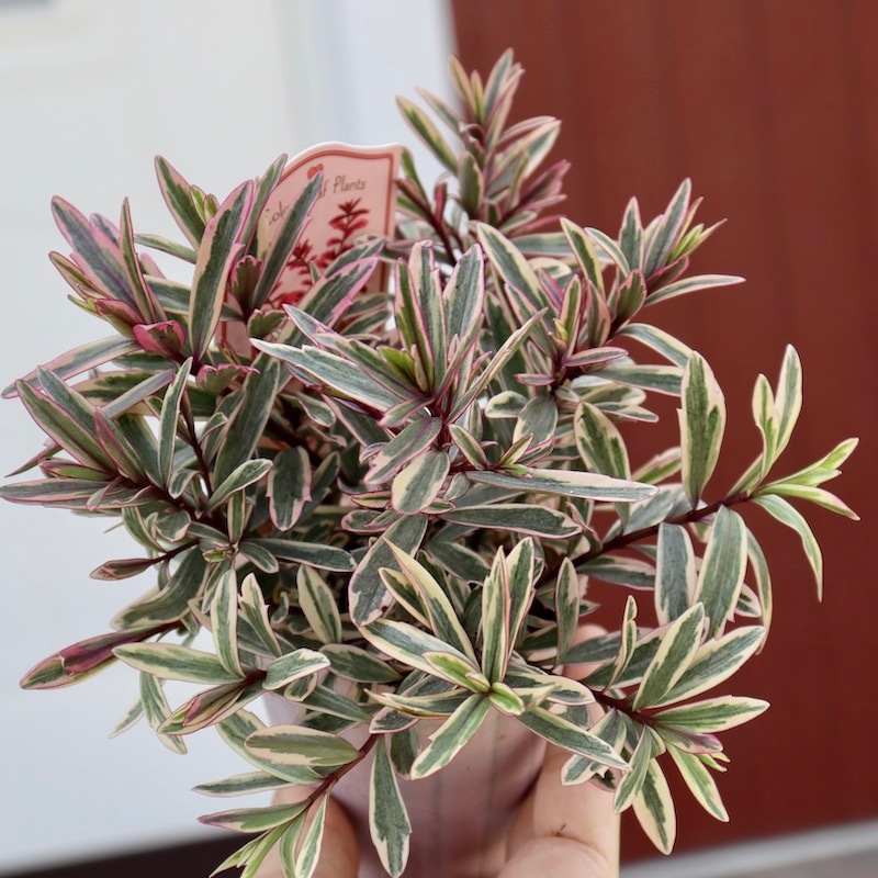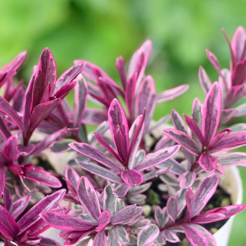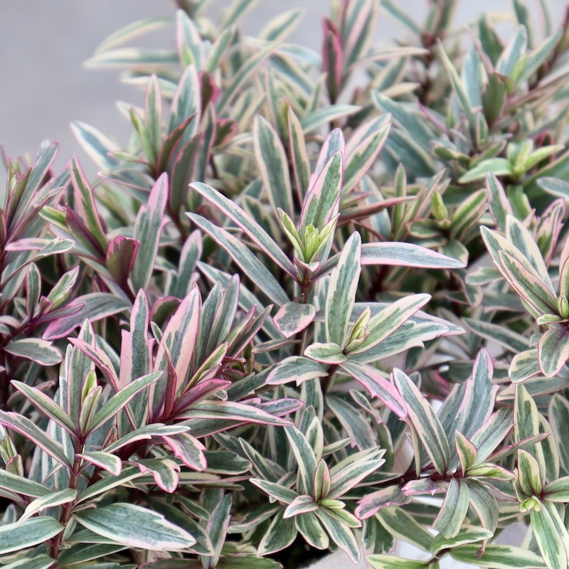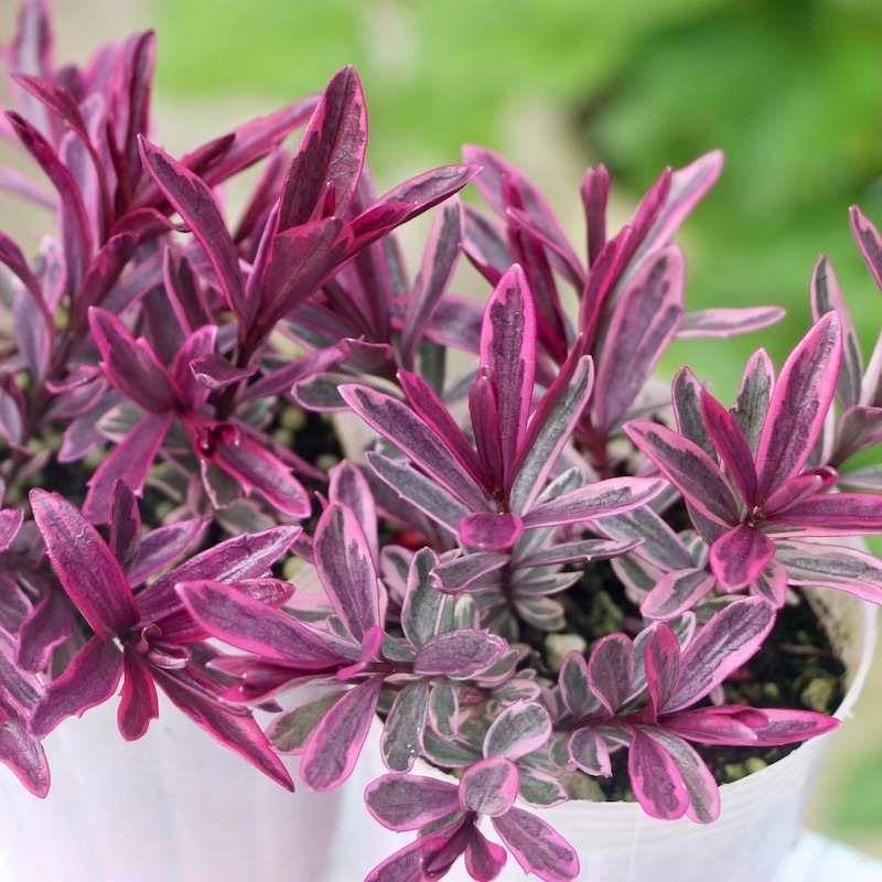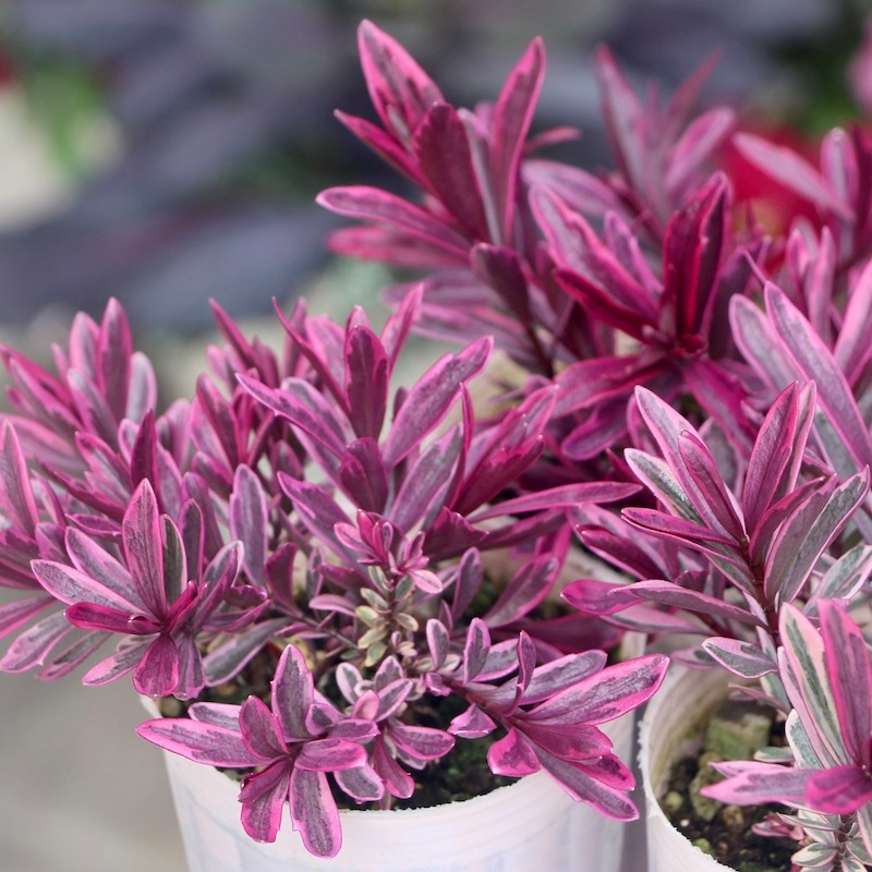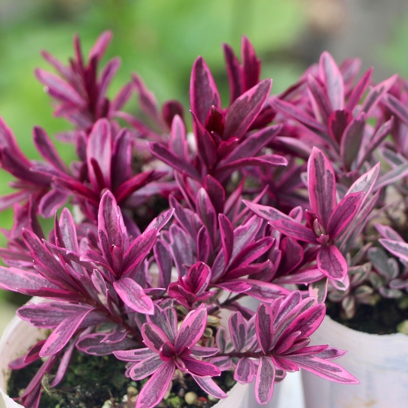 よく分枝したボリュームのある美しい樹形に、夏季は涼し気な斑入り葉、冬季は紅葉したピンクの葉がとっても可愛いカラーリーフ♪