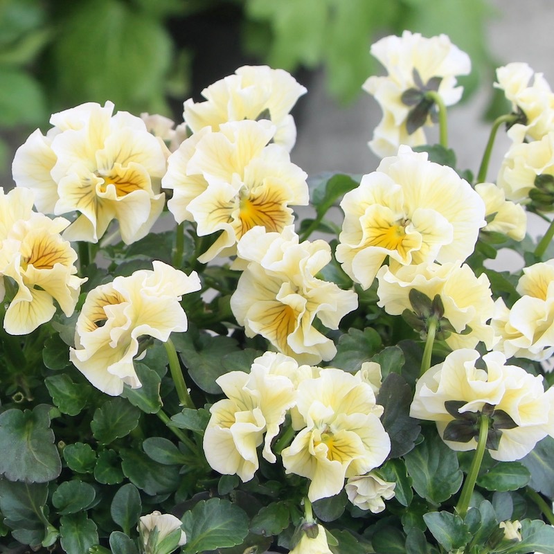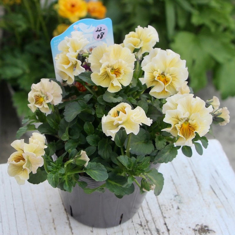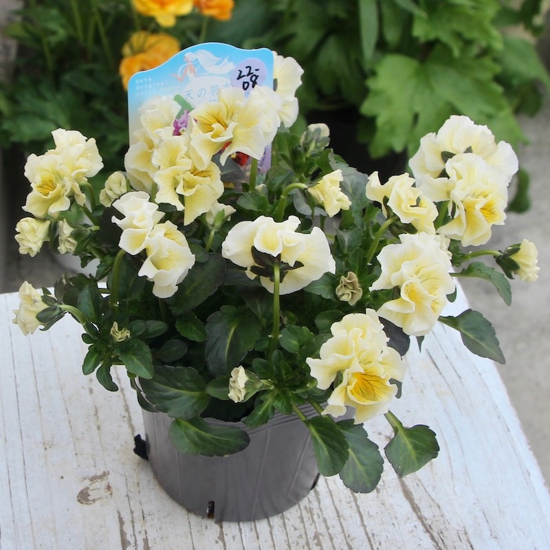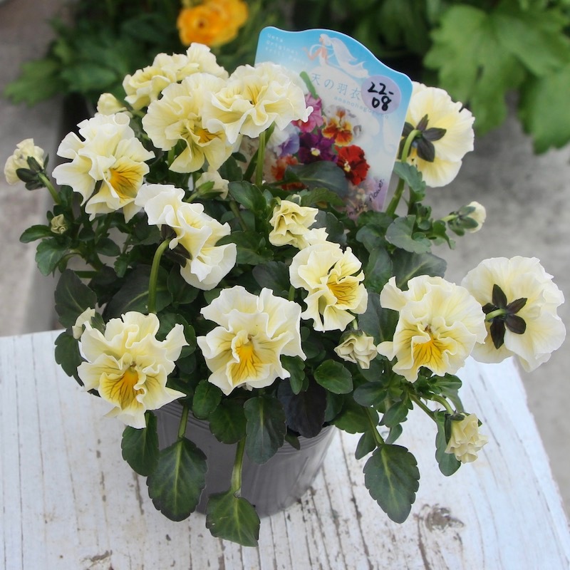 最新の入荷株の状態は Instagramの動画でご覧頂けます♪ もうしばらくお待ちくださいね。 ************************* 毎年大好評♪ 毎年進化している 高知・うえたさんの フリル咲きミニパンジー「天の羽衣」