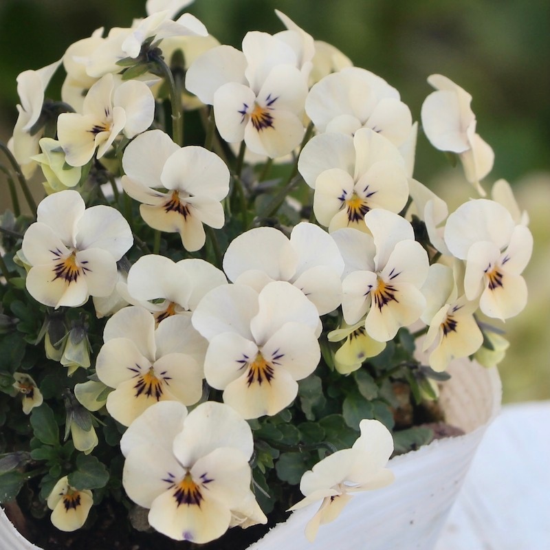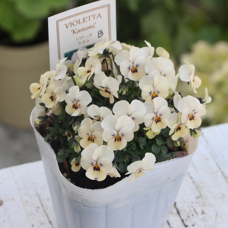 特別レア感のある色ばかりではないのですが、沢山咲く様子がたまらなく可愛いビオレッタ。春には絶対に「これ、良かったね~~」となります。笑 極小輪ビオラは他にもありますが、良株な上、株がコンパクト。 お行儀が良くて花付きも良好!! ですが、流通の少ないビオラです。 品種名はついていますが、多少の色幅・個体差はあります。 花弁の大きさは直径2㎝前後。 ポットの大きさと比較してイメージなさってくださいね。 また、花色というのは気温や日照条件によっても変わります。育てているうちに色の出方が変わることもよくあることです。(それがまた魅力) ご了承ください。