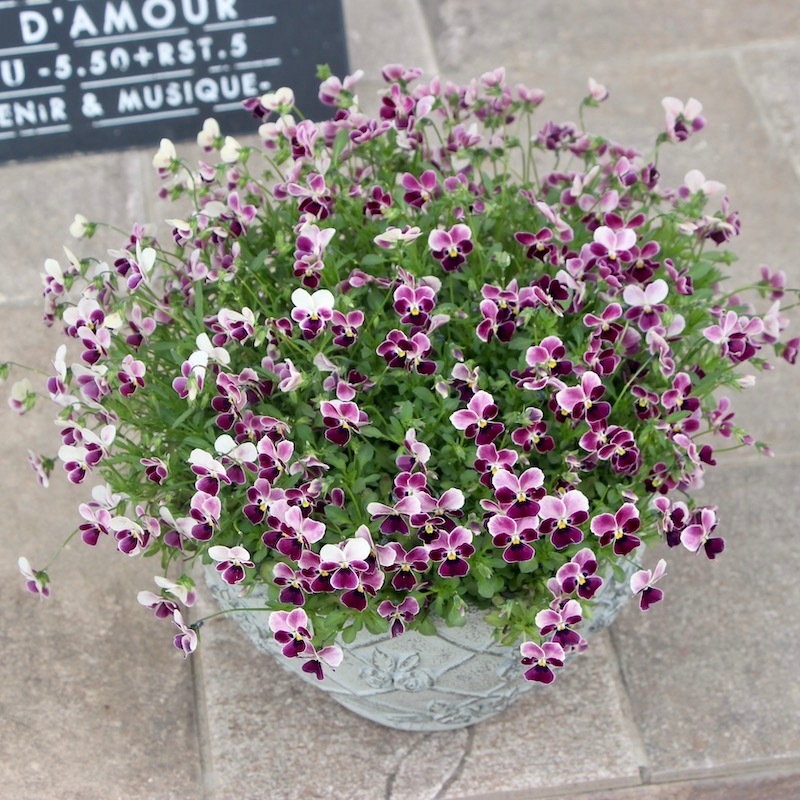 実は、このビオラは見元園芸さんの青い花で人気の「つぶらなタヌキ」として入荷したもの。