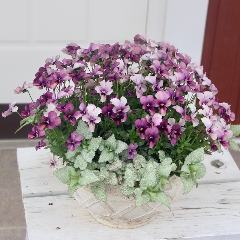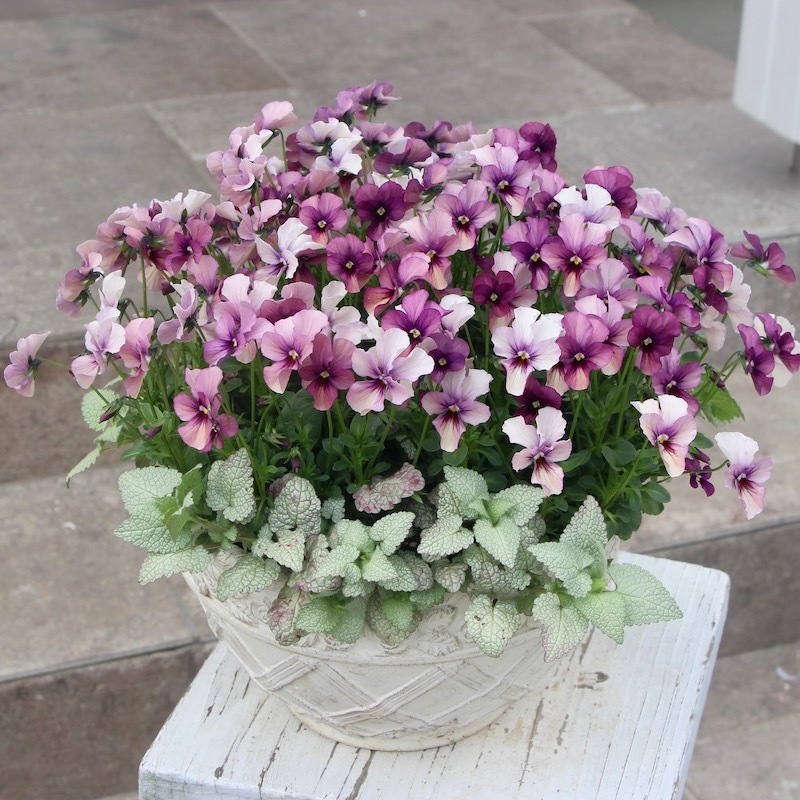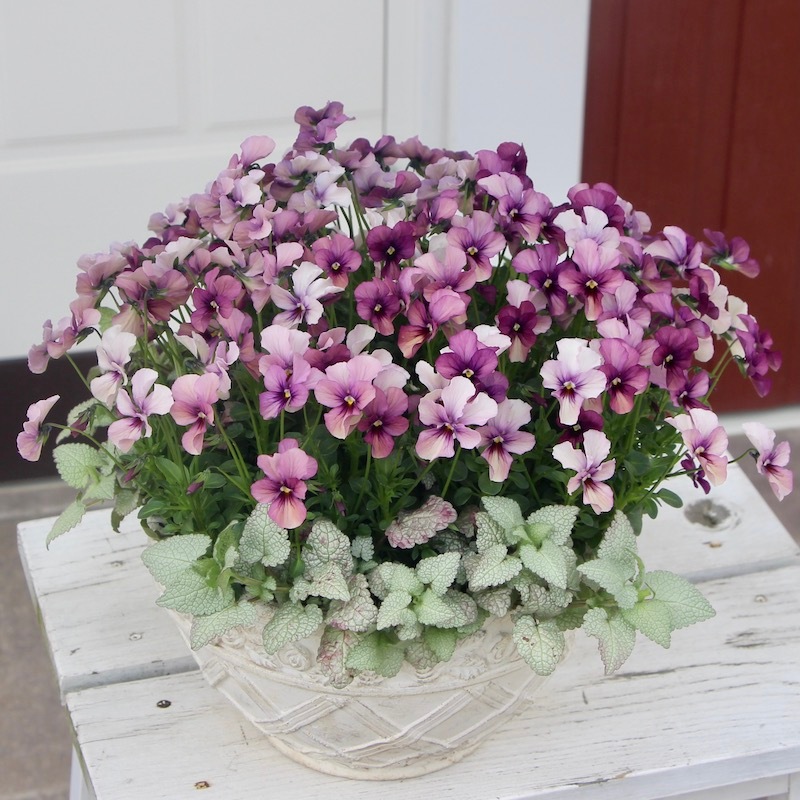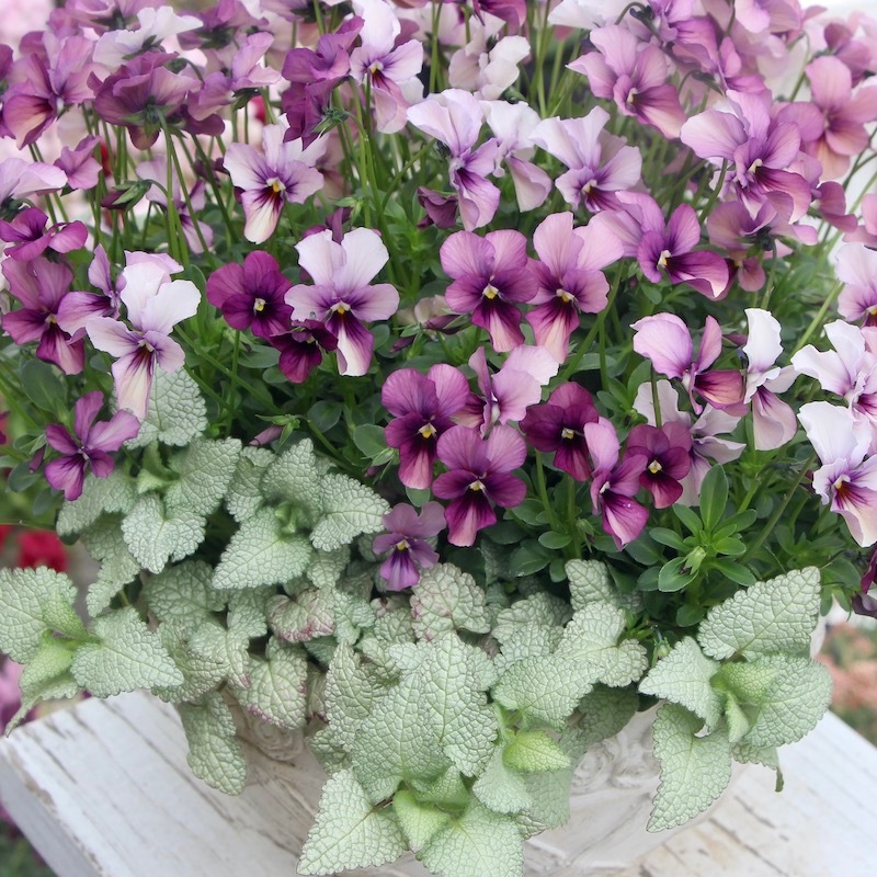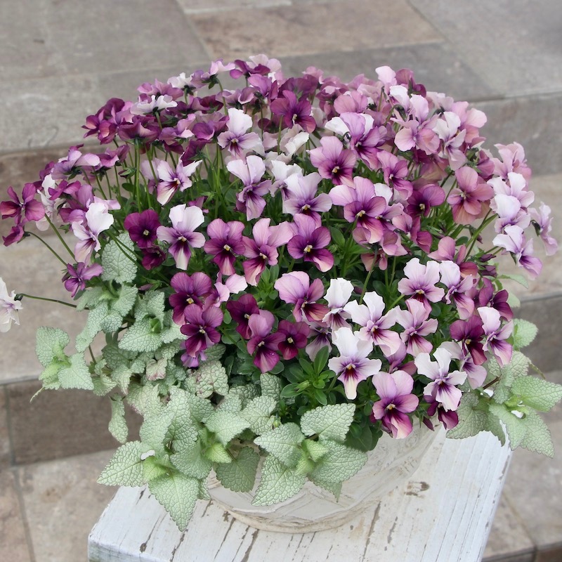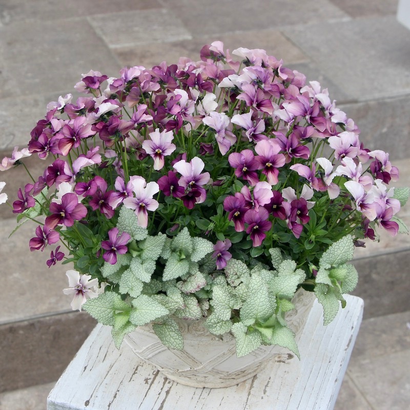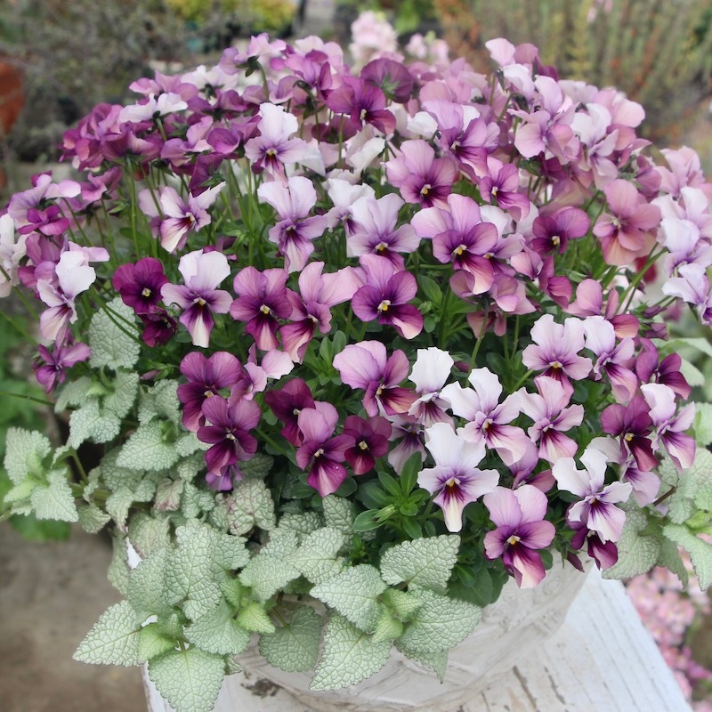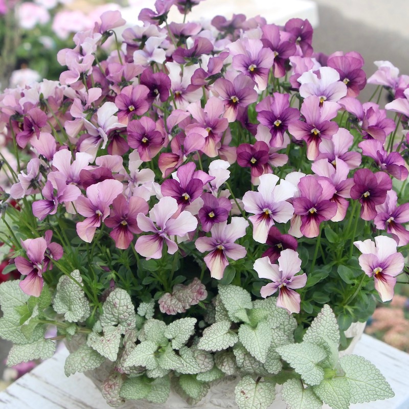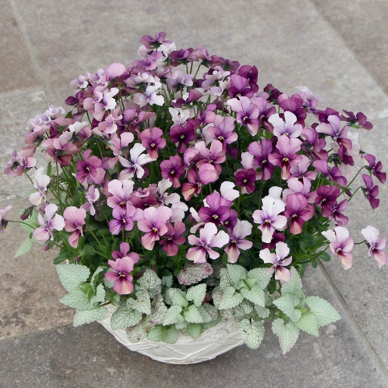 植田さんの人気ビオラ・パピヨンワールドを主役に、あえて引き立てる葉物はラミュームのみで!!