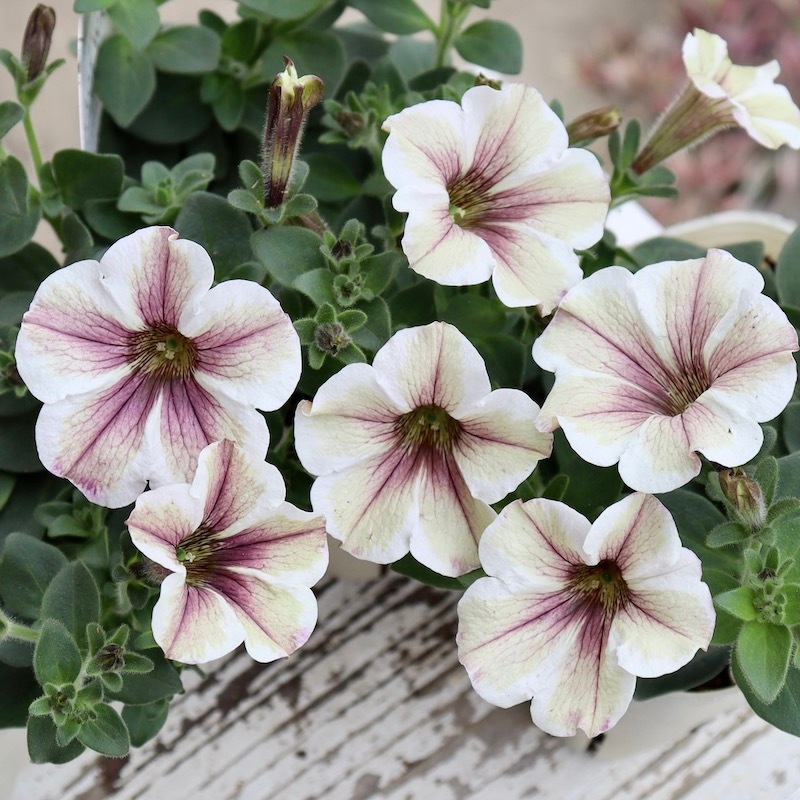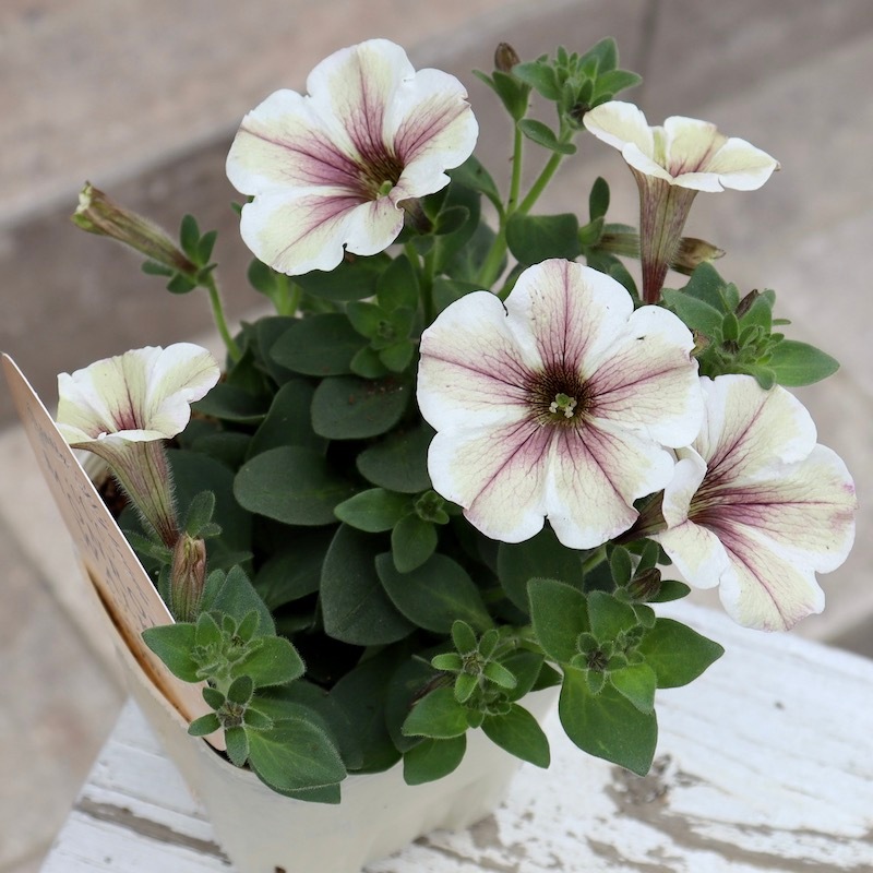 花径 約5cm 少し小さめの花です。 なんだかんだ言ってペチュニアは夏に強く、晩秋まで長く楽しんで頂けます。