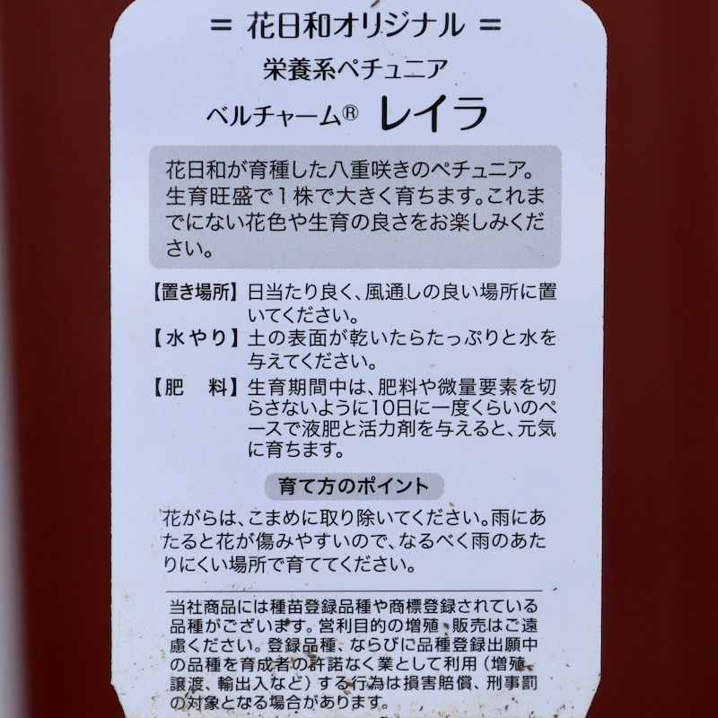 それでも、茎が伸びすぎて乱れてきたら、思いきって切り戻してくださいね。 また見事に再生してくれます。 ‥‥‥‥‥‥‥‥‥‥‥‥‥‥‥ 自信を持っておすすめできる苗のみを豊富に取り揃えております。 ‥‥‥‥‥‥‥‥‥‥‥‥‥‥‥ ※お届けするのは写真のものと同等品になります。 また、色はできるだけ現物通りに再現する努力はしておりますが、発色はご覧のPC環境によって異なります。 ※植物は日々生育していますので、お届けした後により美しく咲いてくれるようにと当店では枝先をピンチするなどして管理しています。 ピンチ直後の苗は一時的に花芽が画像より少なく、お届けした際に画像よりもさびしい苗に見えることもありますが、お届け後にたくさん開花させるための方法です。 ご了承ください。 |