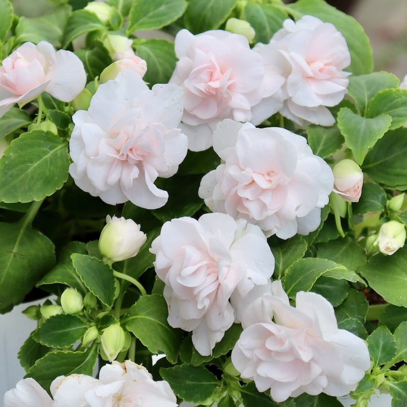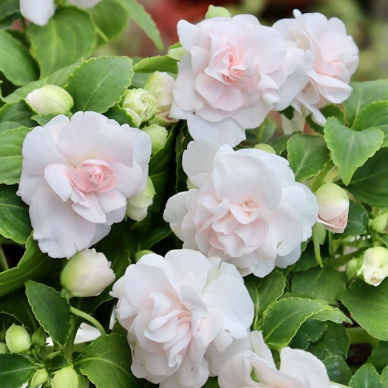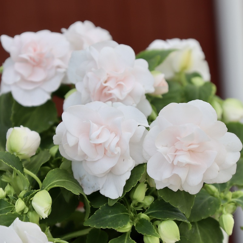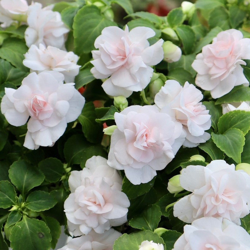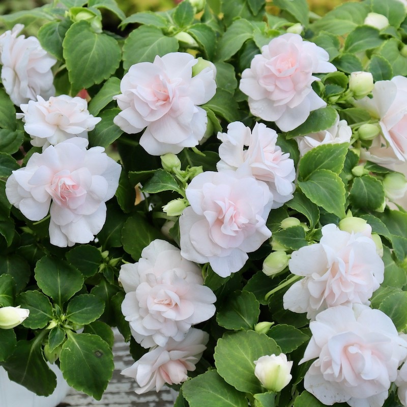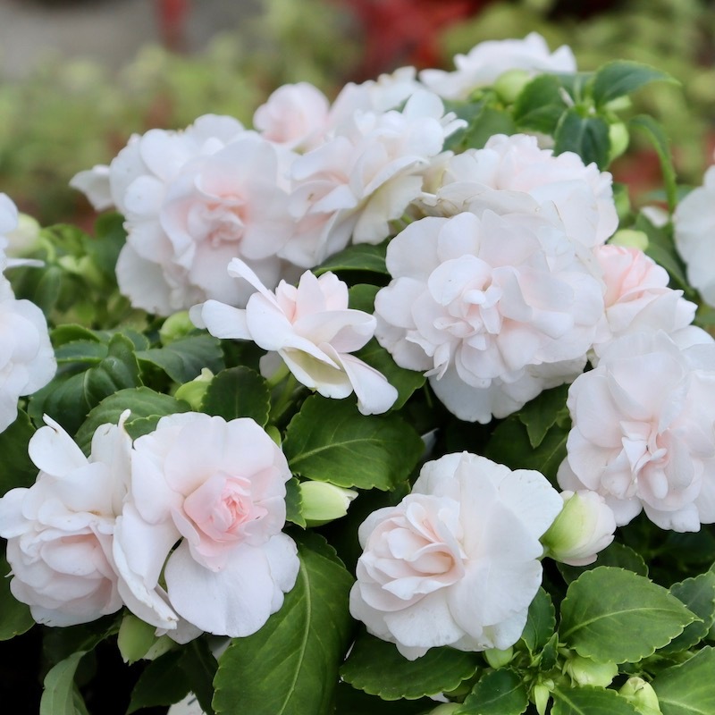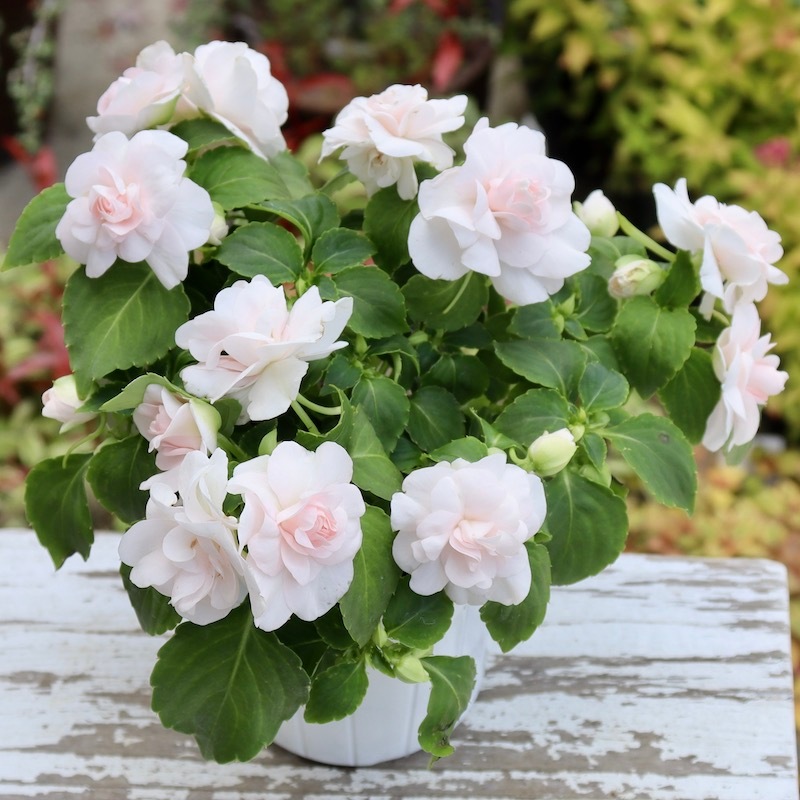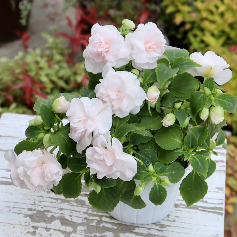 薔薇のような花が沢山そして長期間咲く八重咲きインパチェンス。