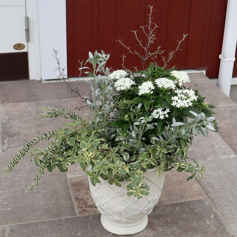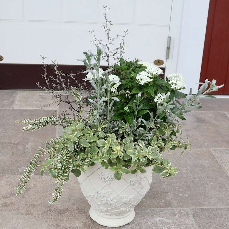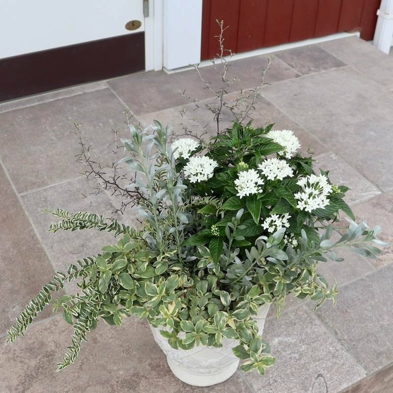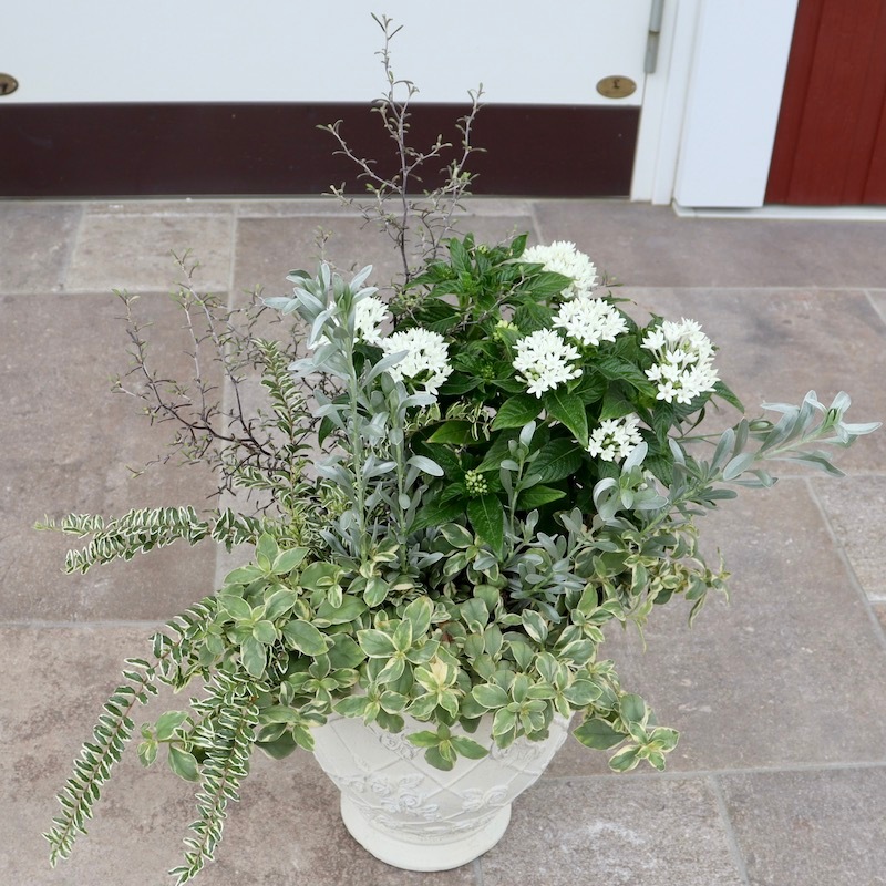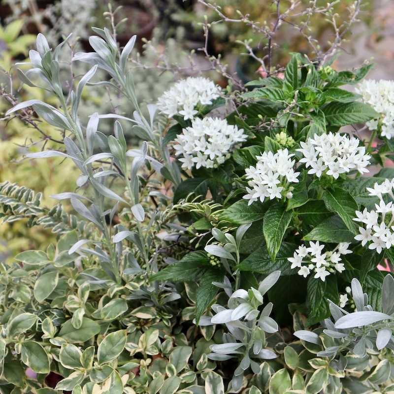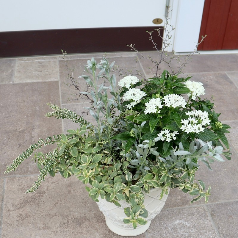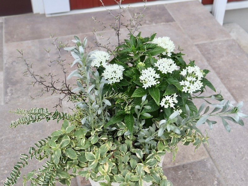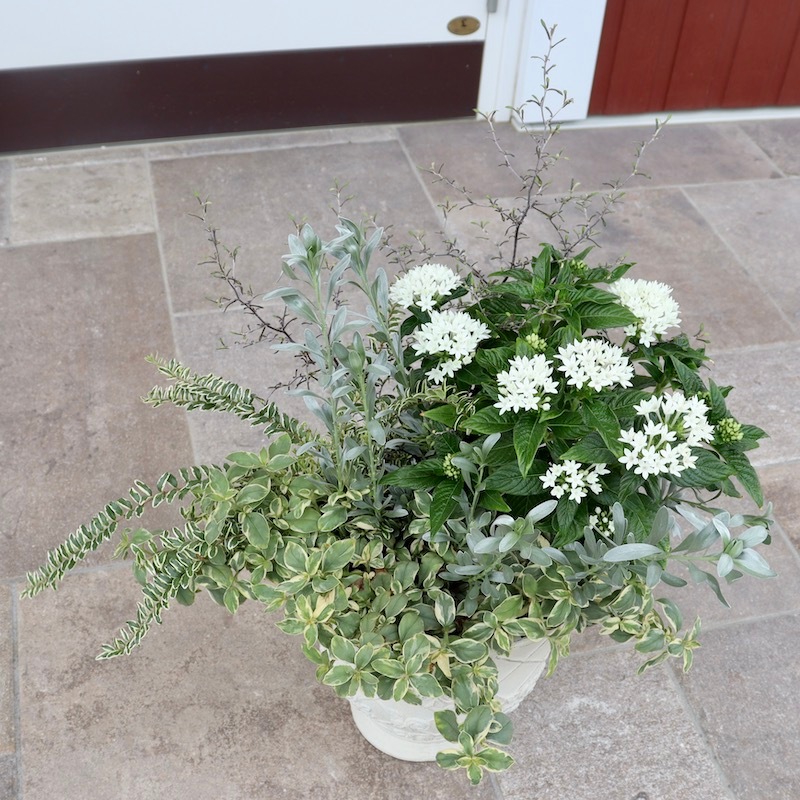 昨年、そして今年もびっくりするほど人気だったペンタス・ベストのホワイトを主役にした寄せ植え!!