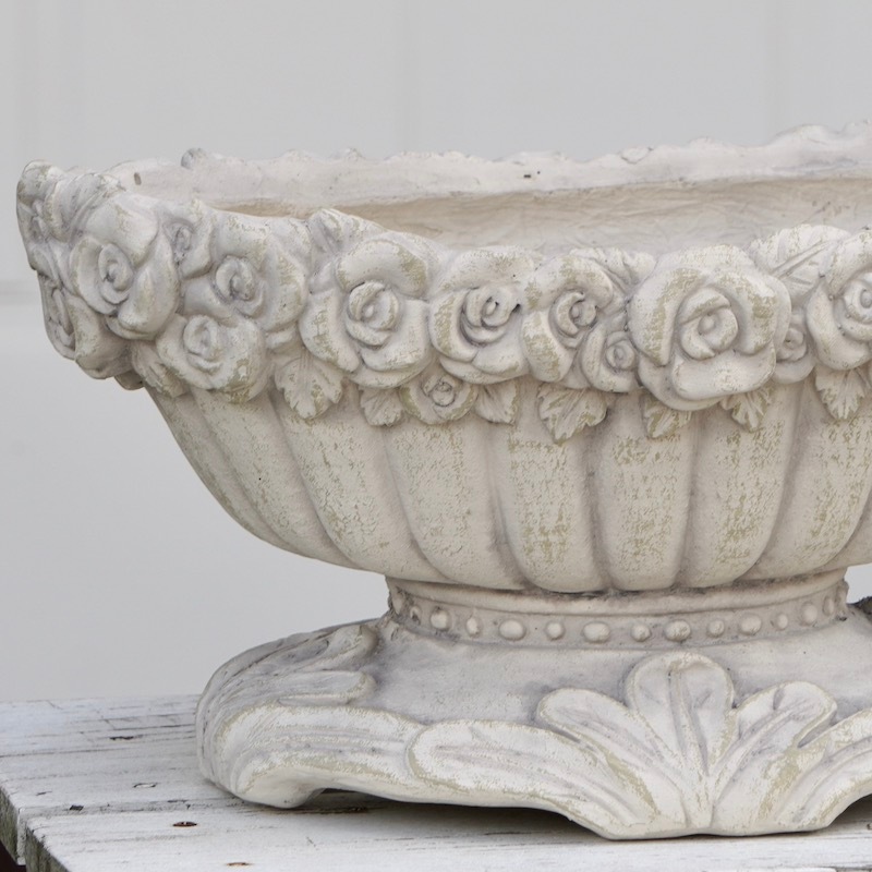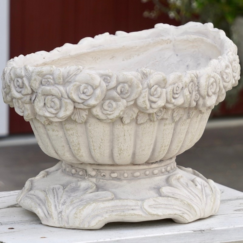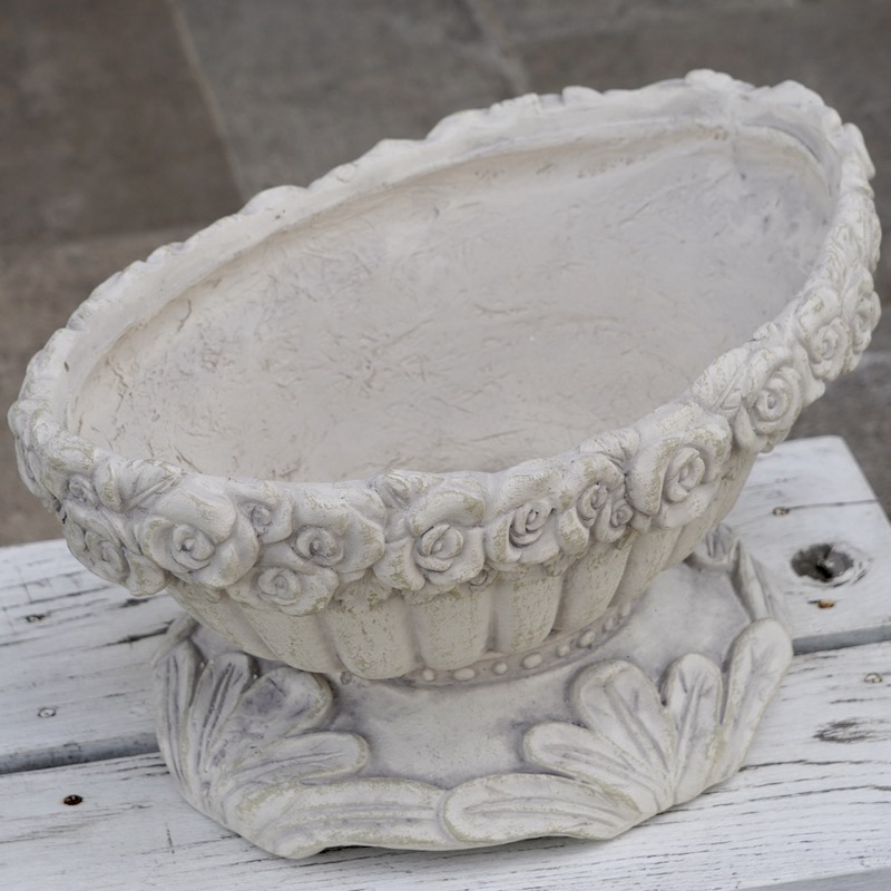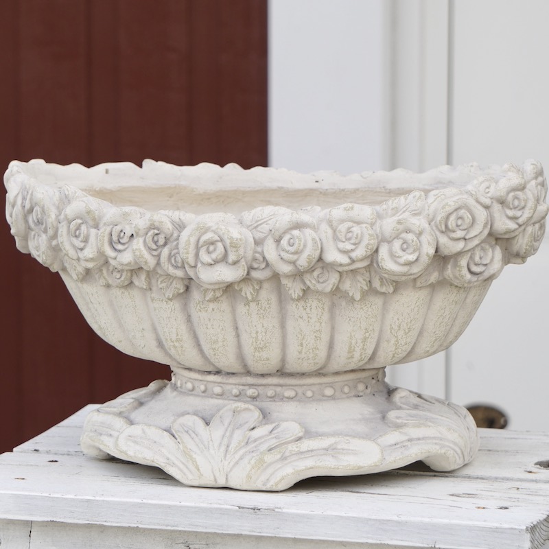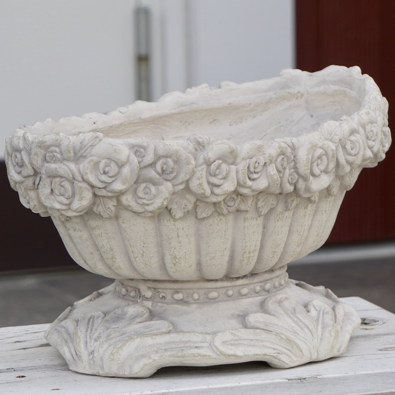 (2)軽いのにテラコッタの質感 一見、テラコッタに見えるのに・・・ テラコッタよりも軽くて持ち運びも楽ちん!同等サイズのテラコッタの半分から1/3ぐらいの軽さです。 重量物を置きたくないベランダにもオススメですね。 特に、大きめの鉢は土を入れるとかなりの重量になります。 大きなテラコッタは持てないし動かせないし・・・でもプラスチック製は嫌いーとおっしゃるお客様に朗報ですね。 プラスチックとテラコッタの間という感じでしょうか。 (3)オシャレなデザイン性 テラコッタでは難しかったデザイン、模様もグラスファイバーなら解決! 例えば、テラコッタでは持ち手に強度がなくてどうしても割れやすかったバスケット型なども大丈夫。 欲しかったデザインの商品がたくさん揃っています。