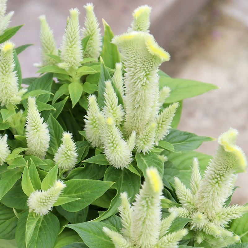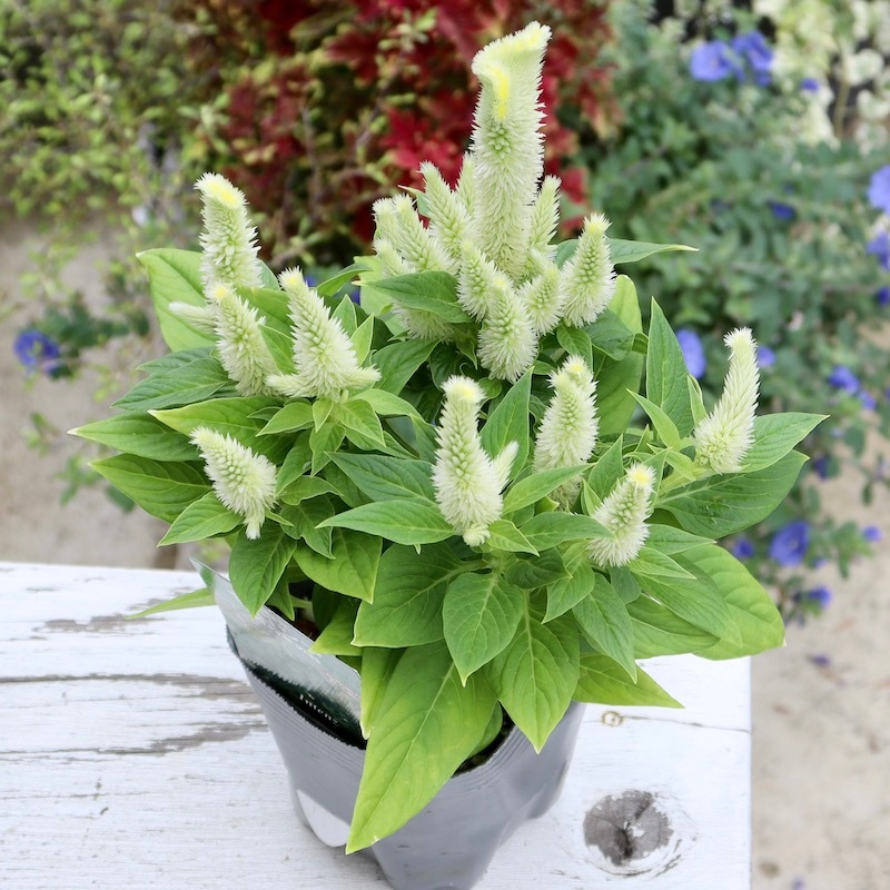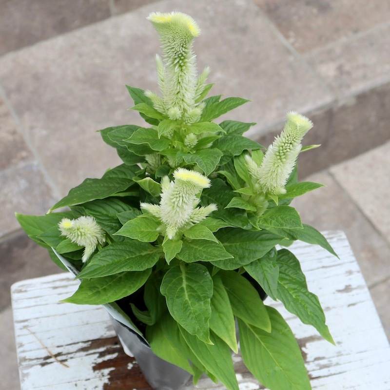 今回はがっちりコンパクトに沢山の花が咲くタイプのセロシアです。