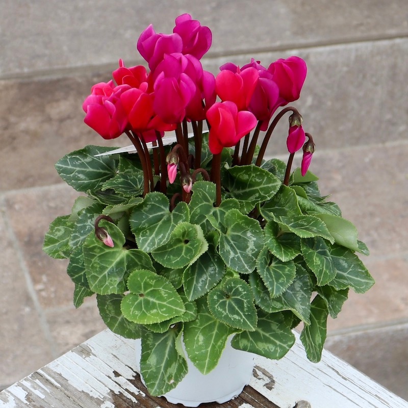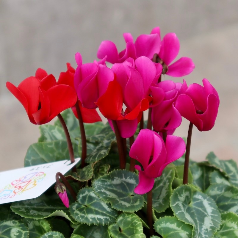 寒さに強く、秋から冬の花苗としてもすっかり定着したミニシクラメン。