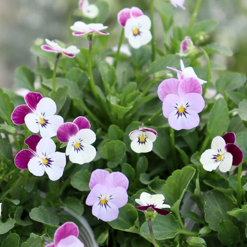 今年も微妙な色分けや撮影に難航しそうですが、品種別のさらなる色分け販売もコツコツがんばりますね!! 手間隙がかかるため、どうしても少し割高になります^^; お買得なお色お任せの3株セットもご用意していますので、合わせてご検討下さいね。 なお、品種や色指定はもちろんのこと、再入荷見込みもありません。 もともと1株しか入荷がないものもあります。 ご希望の色は在庫のある時に逃さずにお買い求め下さいね。 特別レア感のある色ばかりではないのですが、沢山咲く様子がたまらなく可愛いビオレッタ。春には絶対に「これ、良かったね~~」となります。笑 極小輪ビオラは他にもありますが、良株な上、株がコンパクト。 お行儀が良くて花付きも良好!! ですが、流通の少ないビオラです。 品種名はついていますが、多少の色幅・個体差はあります。 花弁の大きさは直径2㎝前後。 ポットの大きさと比較してイメージなさってくださいね。 また、花色というのは気温や日照条件によっても変わります。育てているうちに色の出方が変わることもよくあることです。(それがまた魅力) ご了承ください。