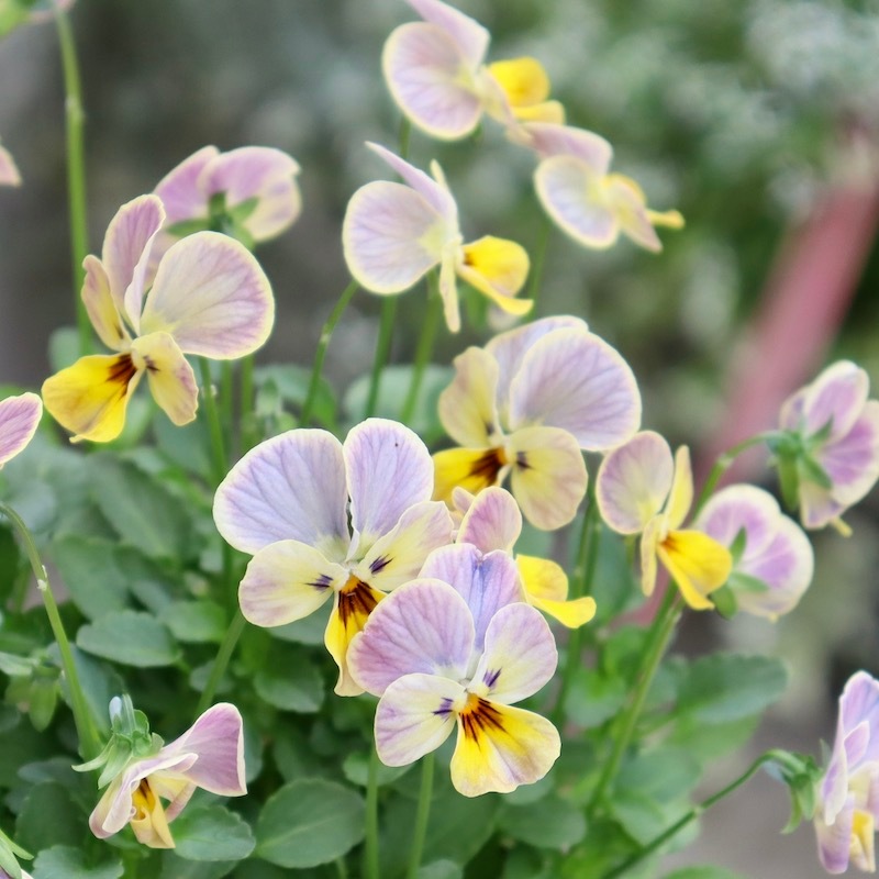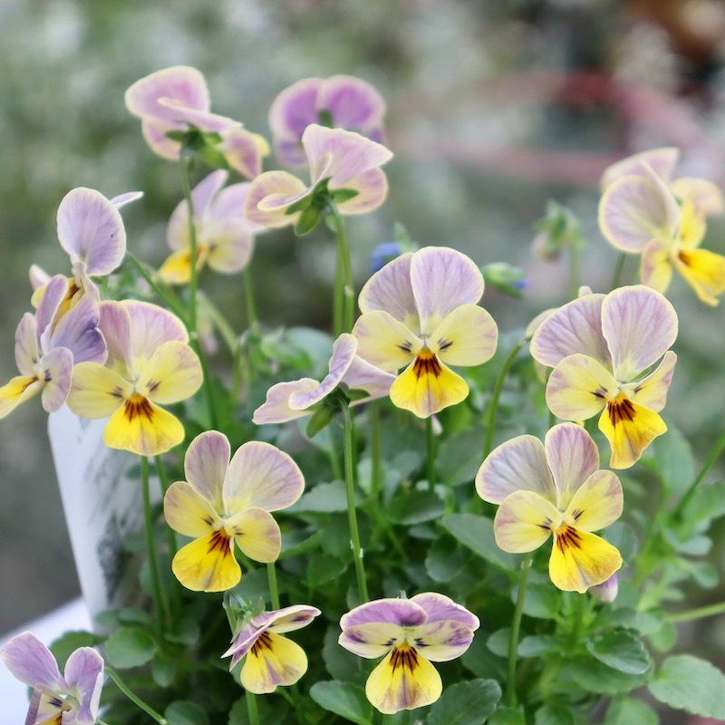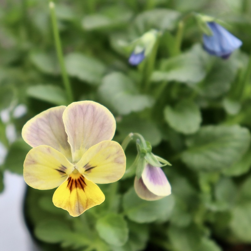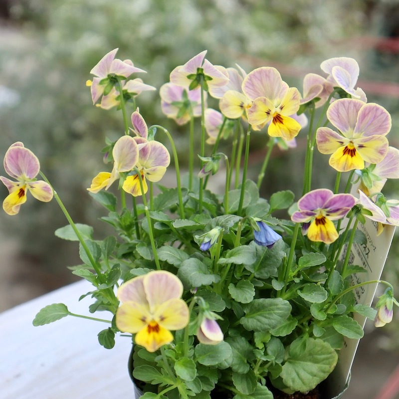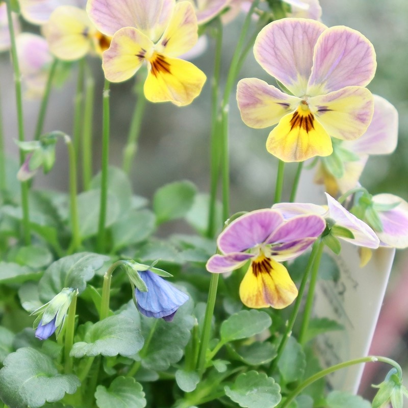 ちょっと渋いブラウン系の花かと思っていたのに、届いたら個性派ミックスビオラでした。笑