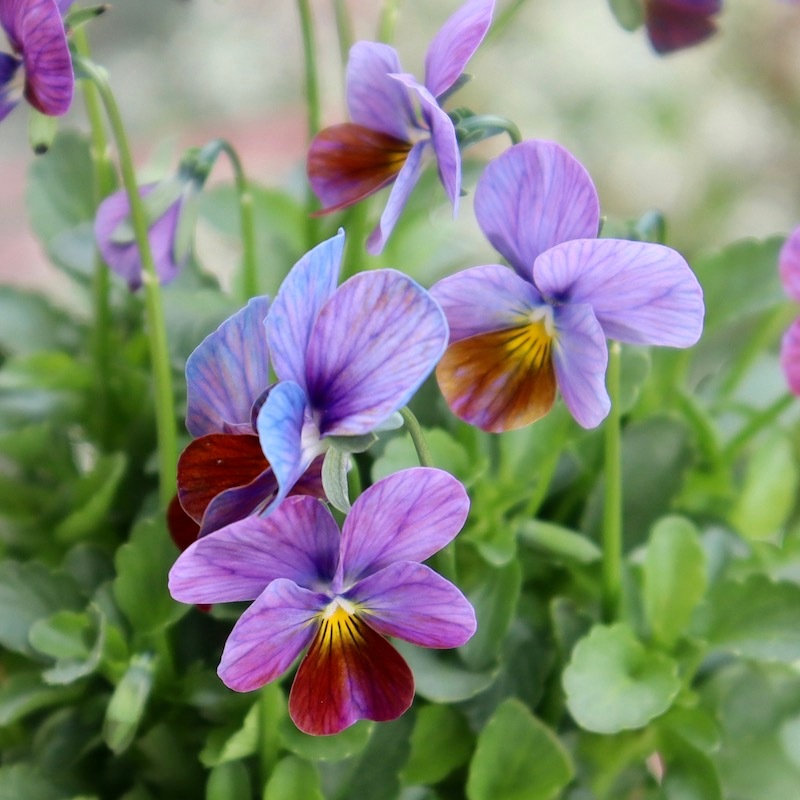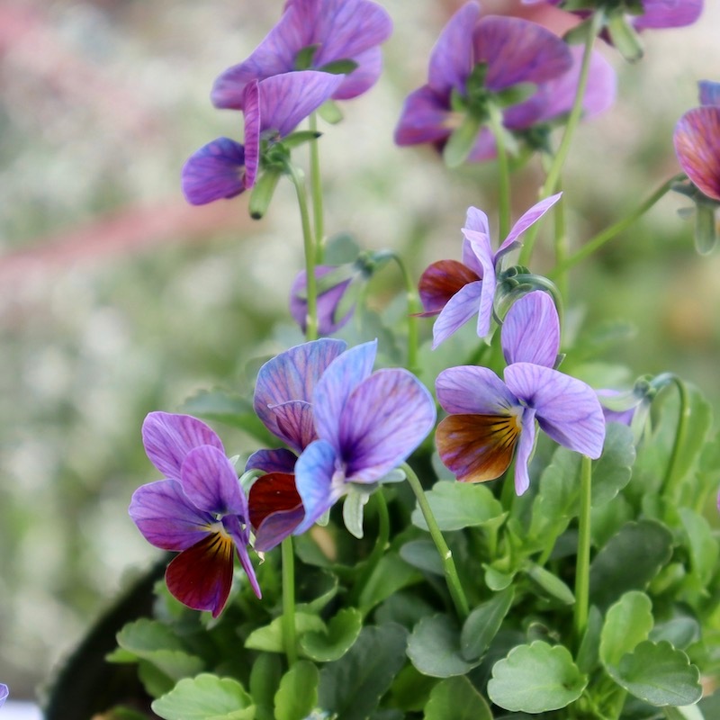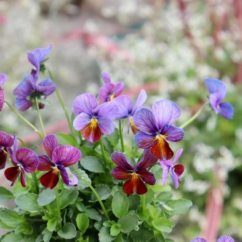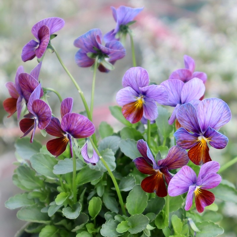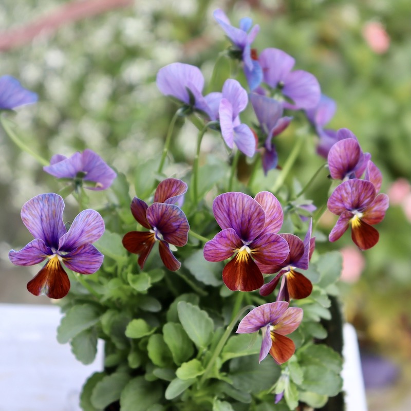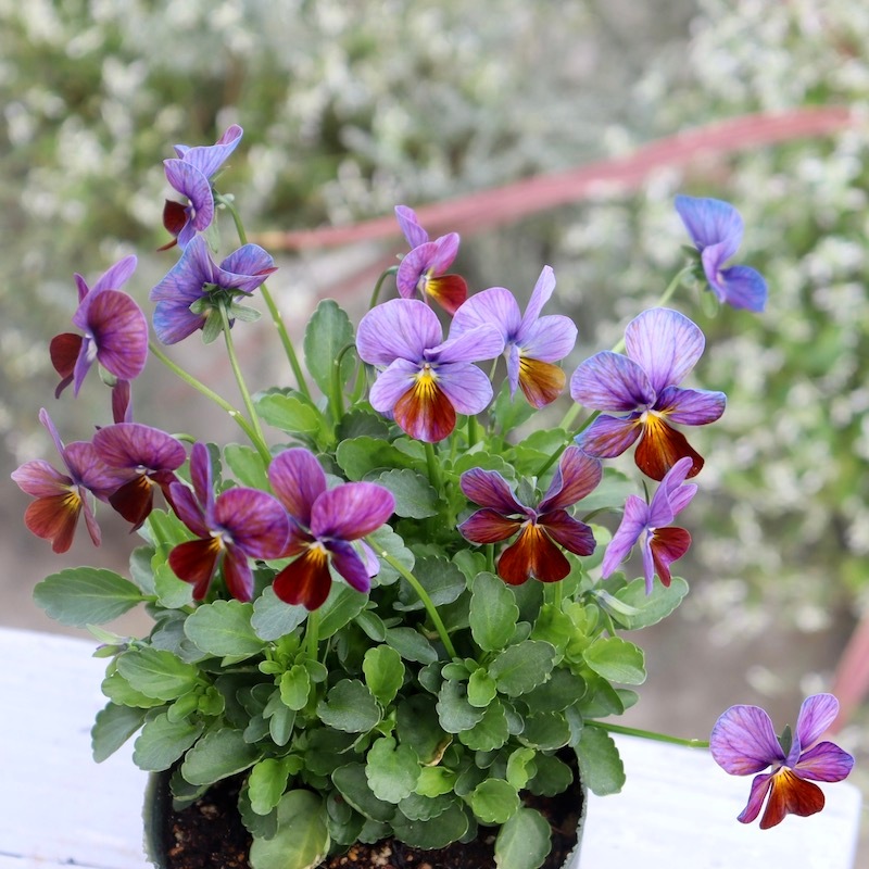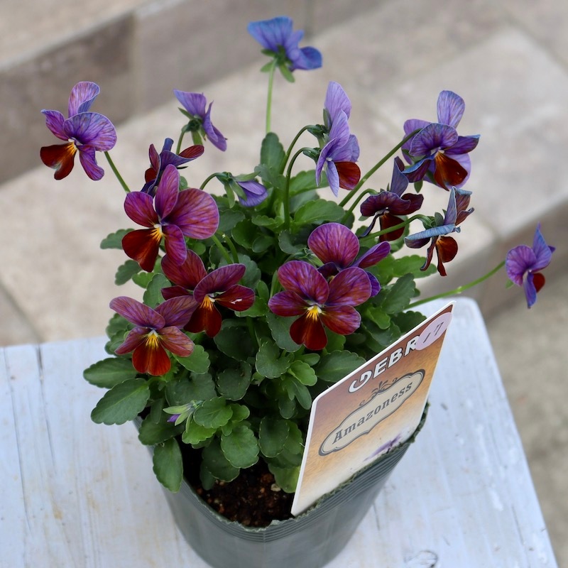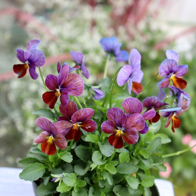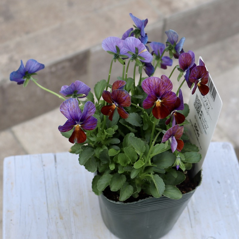 ちょっと渋いブラウン系の花かと思っていたのに、届いたら個性派ミックスビオラでした。笑