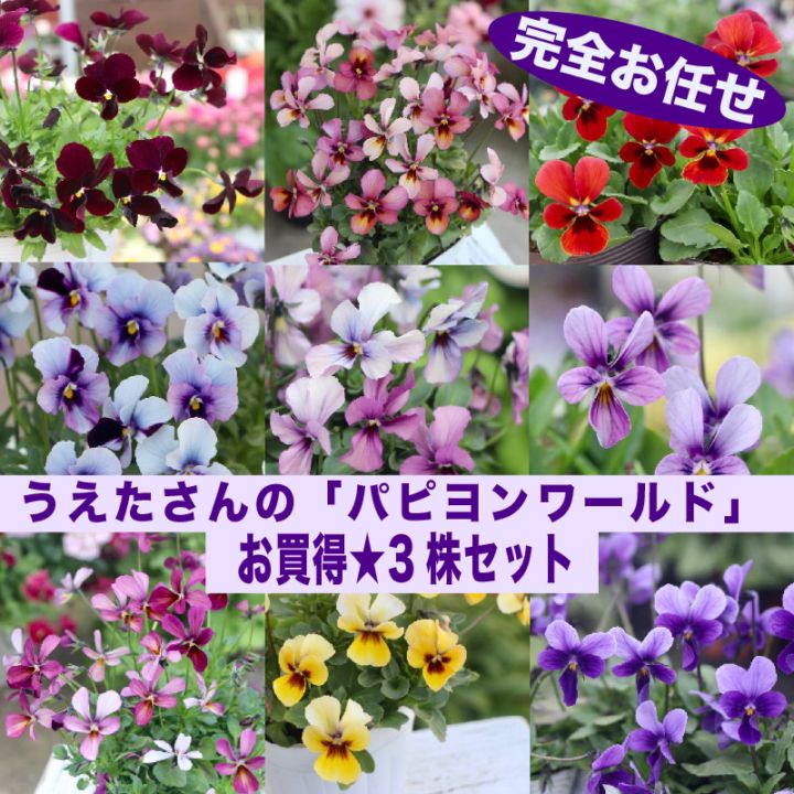 入荷した苗の中からボリュームのある開花株を選んでお届けしますね。 お買得なお任せ3株セット (昨年までは4株セットでしたが、今年はよりお買い求めやすい3株セットにしました!!)