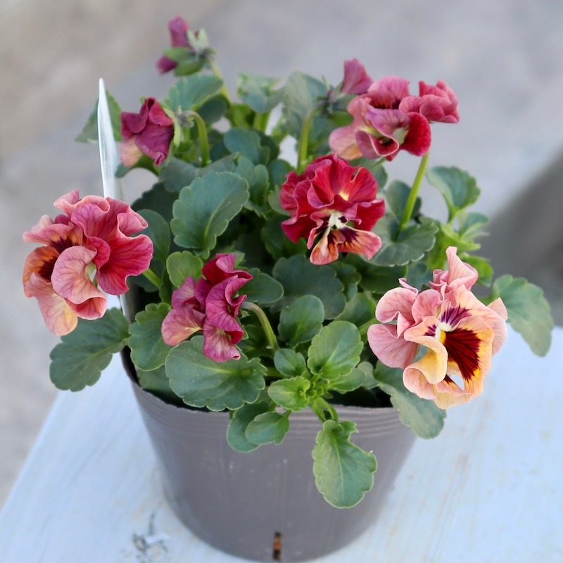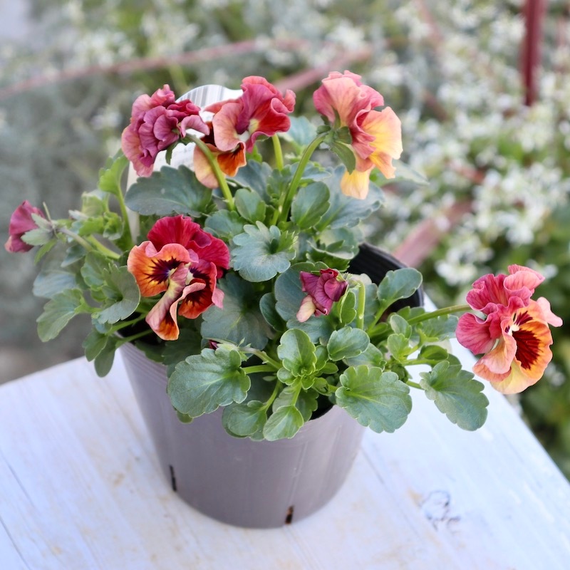 うえたさんがプロデュースされた何とも微妙な色合いが素敵なフリル咲きミニパンジーです。