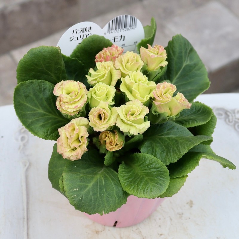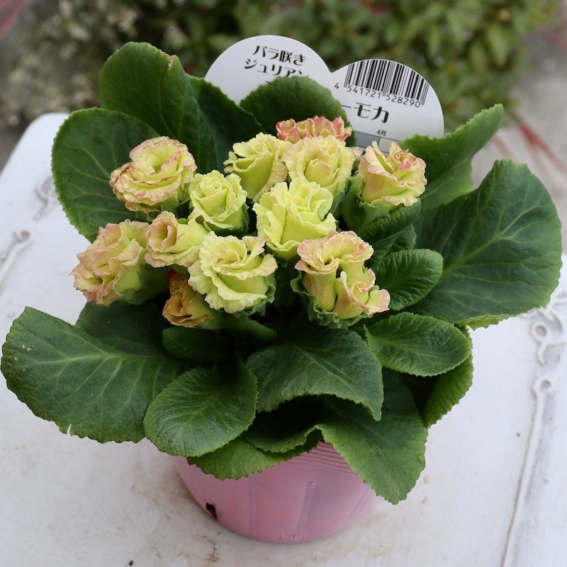 ************************* とっても品のある美しい色のバラ咲きジュリアン「ミステリーモカ」 今シーズンもパンジービオラのみならず、魅力的なプリムラも沢山取り扱いたいと思っています♪ これも私のイチオシお気に入り品種! 色幅があり過ぎて色分け困難な品種ですが^^; とりあえず過去画像と睨めっこして品番をつけました♪ 早春の代表的な花の一つ「プリムラ・ジュリアン」ですが、その中でも特に立体感のある花が人気の「バラ咲きタイプ」です。