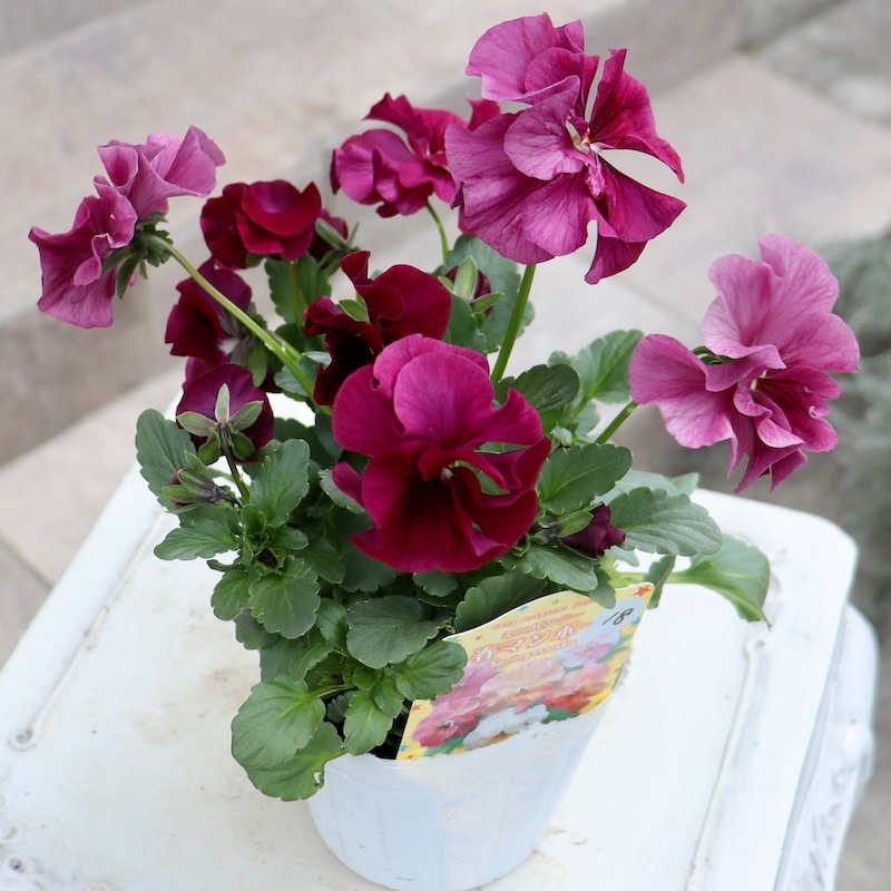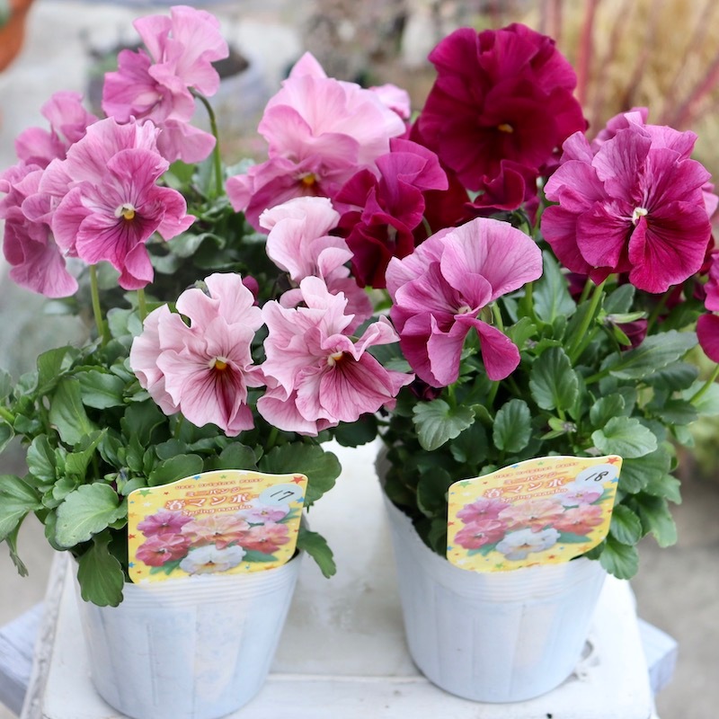 昨年ぐらいから少し花が大きくなったように感じています。 しかも、フリル?フリンジがしっかり効いているので、結構存在感があります。 ちっちゃなビオラのフリル咲きも扱ったことがありますが、花弁の小さなビオラのフリフリはちょっと分かり難いんですよね。 やはりこれ位の花径もいいですよね。 ただ、その花色展開からか、ゴージャスというよりひたすら可愛い感じです。