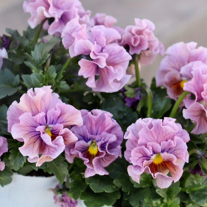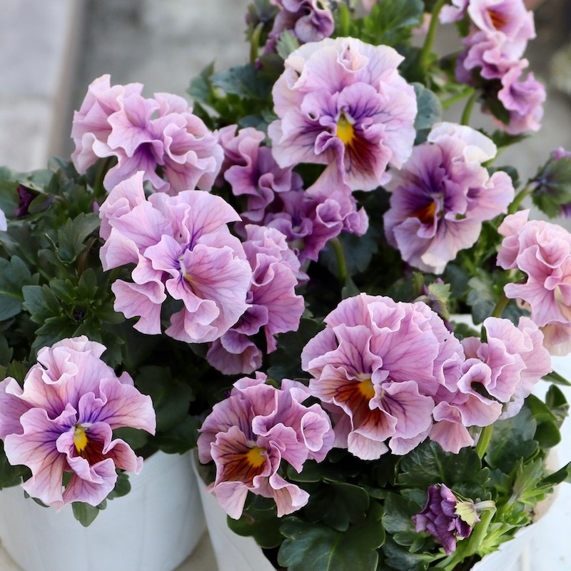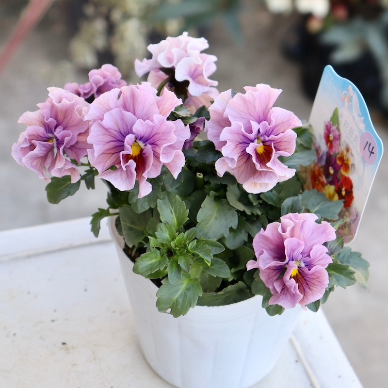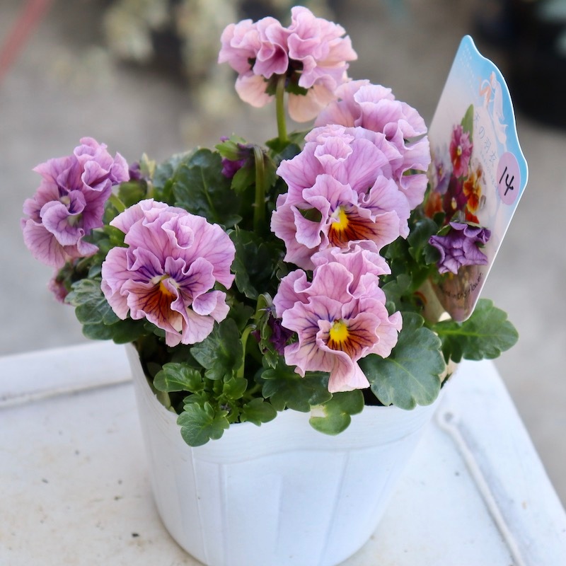高知の植田さんの長年大人気のフリル咲きミニパンジー「天の羽衣」