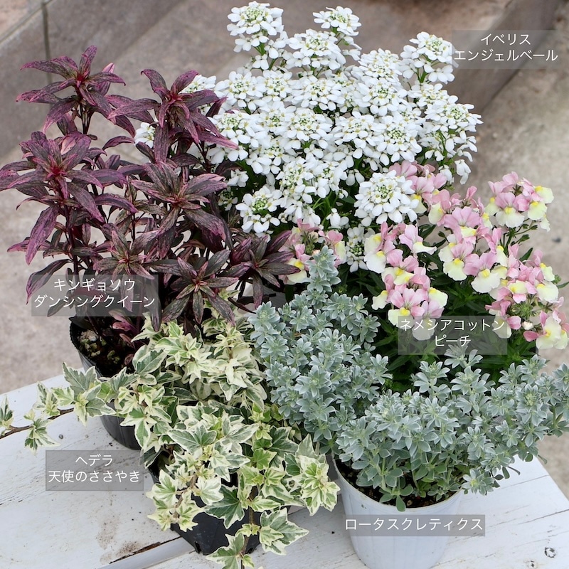 3/28 寄せ植え提案画像を追加しました( 最後の1枚) 今年も入荷できました!! 昨年は2.5号ポットでしたが、今年は3.5号とポットサイズが随分大きくなりました。 掲載画像は、2024年2月初旬に撮影した同じ生産者さんの同品種2.5号ポット苗です。 ポットサイズが大きくなった分、ポットが見えない頭でっかち株ではなくなりました。笑 最新の入荷株の状態は