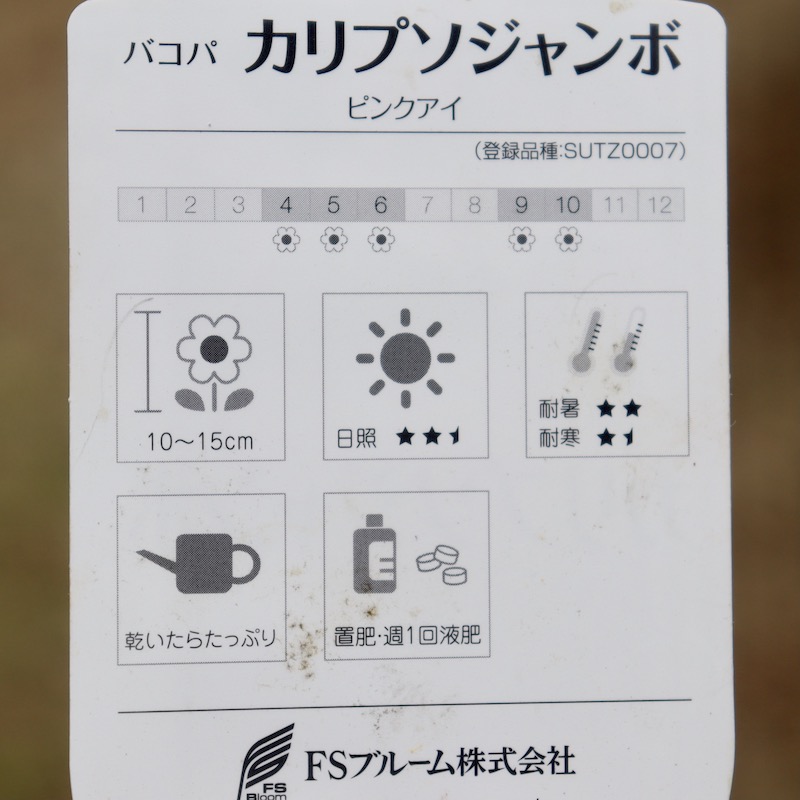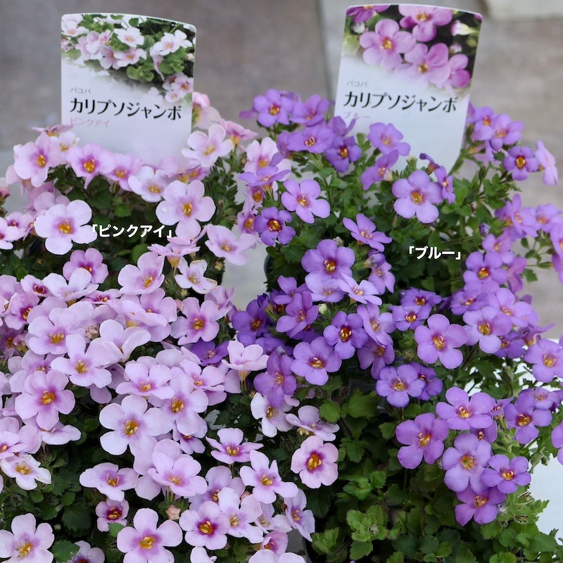 色指定での入荷が困難な品種です。 何年ぶりかに入荷してみた大輪のバコパ・カリプソジャンボのパフォーマンスに驚き、すっかり風散歩の定番苗に^_−☆