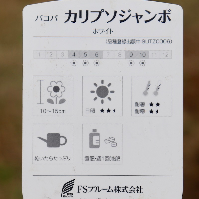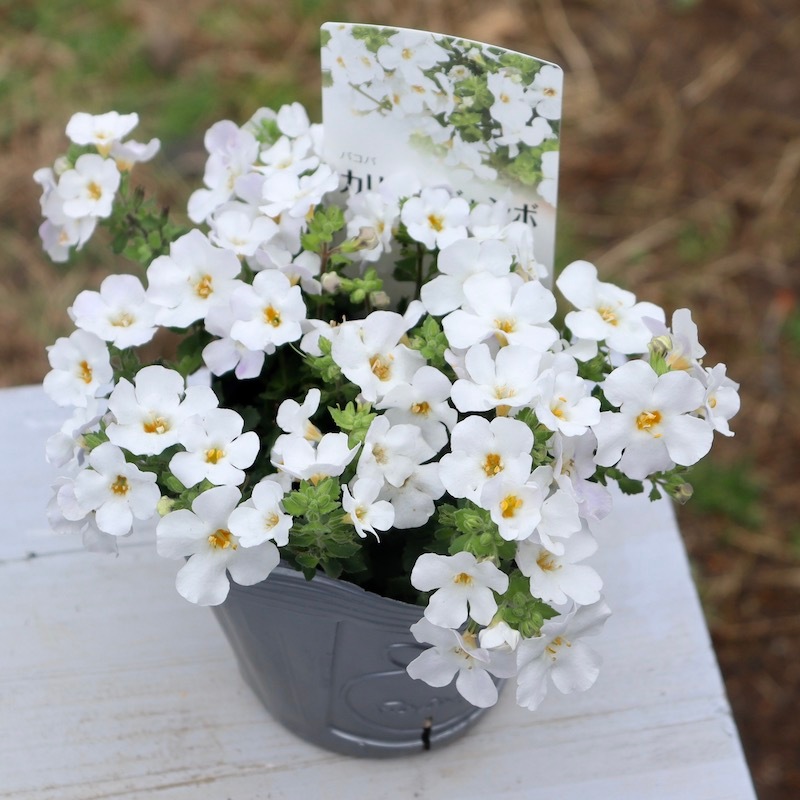 色指定での入荷が困難な品種です。 何年ぶりかに入荷してみた大輪のバコパ・カリプソジャンボのパフォーマンスに驚き、すっかり風散歩の定番苗に^_−☆