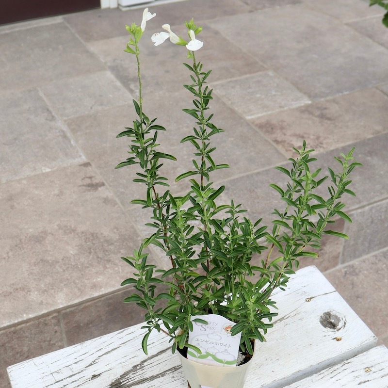 剛健で花の可愛いハーブ、チェリーセージの珍しい真っ白「エンゼルホワイト」