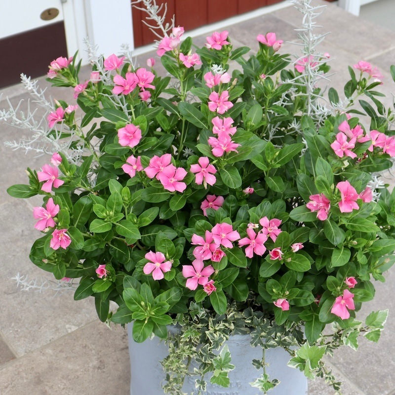 まだ台風の影響もほとんどない 8/29に撮影した 豪華な1点物・見本鉢です!! 2024年デビューのサントリーさんの新品種ビンカ・サニープリンセス