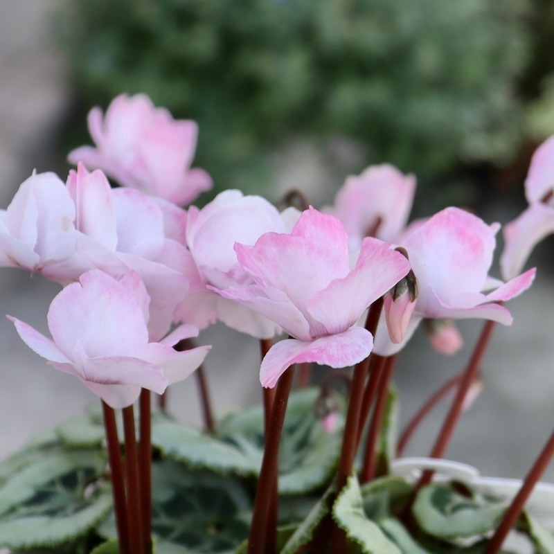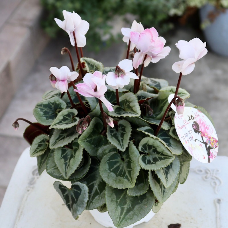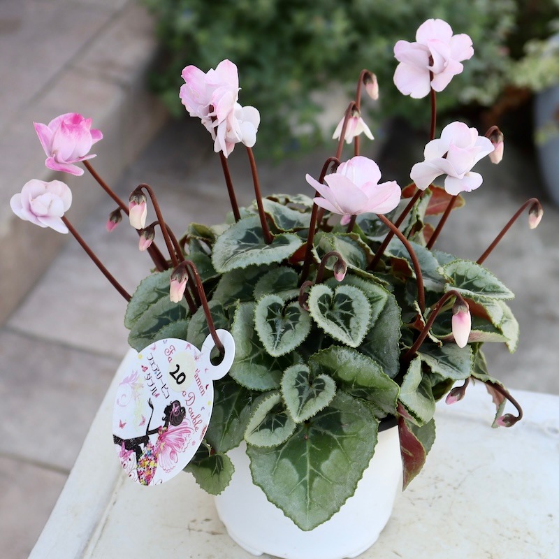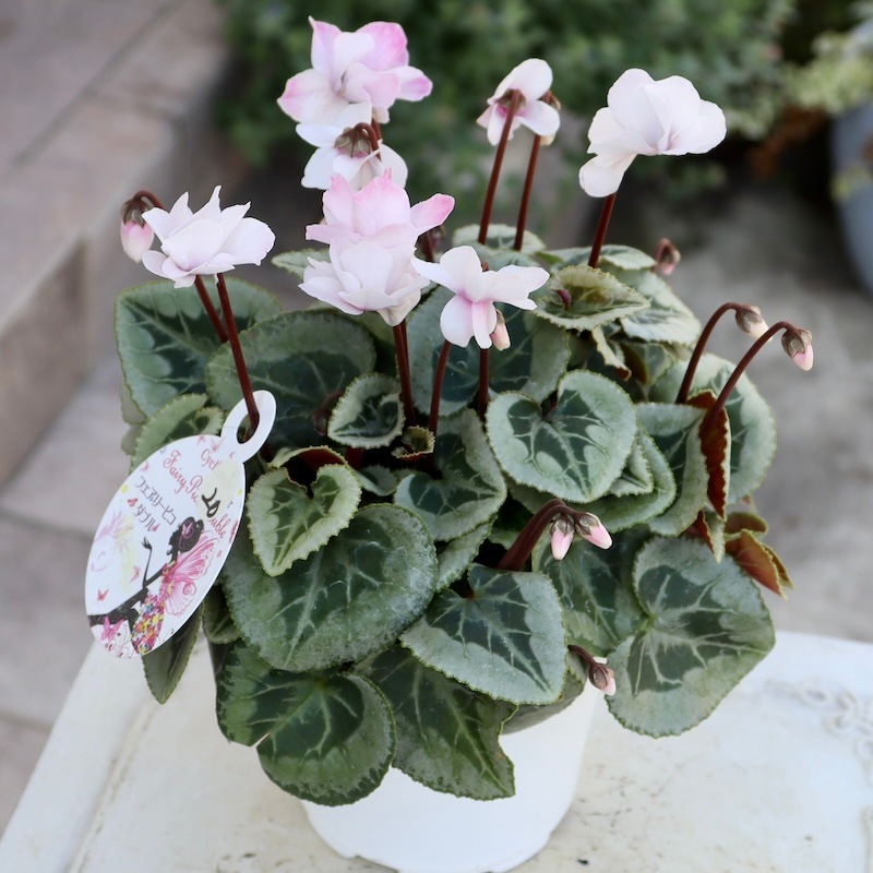 ミニシクラメンらしく耐寒性も強く、ガーデンシクラメンとしても楽しめるそうですよ~! (当店でも年内は戸外栽培の予定です~霜よけはしますが) ちょっと可愛い鉢に植え替えて、玄関前やベランダなどで楽しんで下さいね。