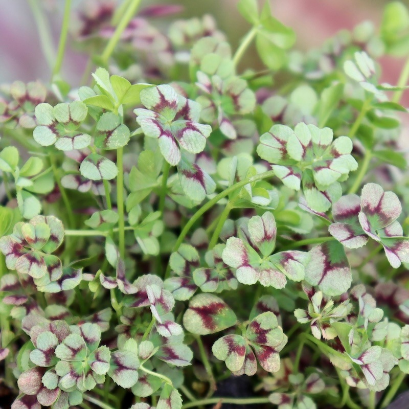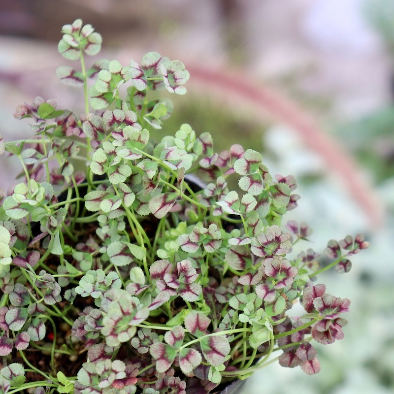 「ローズリーフクローバー」「レッドクローバー」など別名もたくさんあります。 耐寒性抜群で、寒い時季に赤く色づきます。だからしっかり寒さにあてて戸外で育ててください。