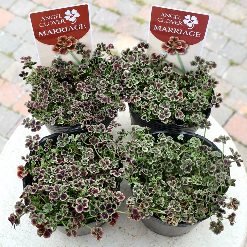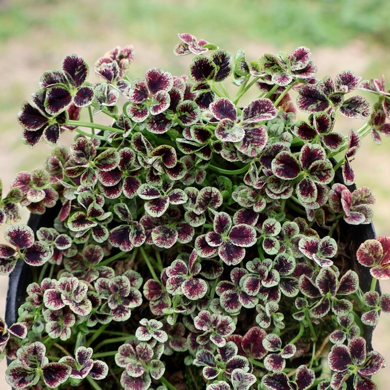 「ローズリーフクローバー」「レッドクローバー」など別名もたくさんあります。 耐寒性抜群で、寒い時季に赤く色づきます。だからしっかり寒さにあてて戸外で育ててください。