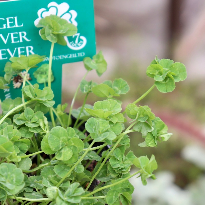 「ローズリーフクローバー」「レッドクローバー」など別名もたくさんあります。 耐寒性抜群で、寒い時季に赤く色づきます。だからしっかり寒さにあてて戸外で育ててください。