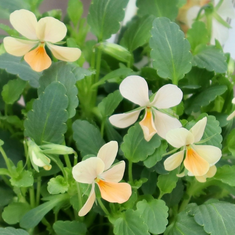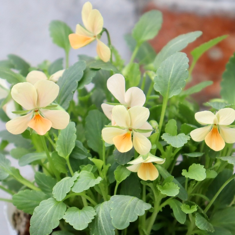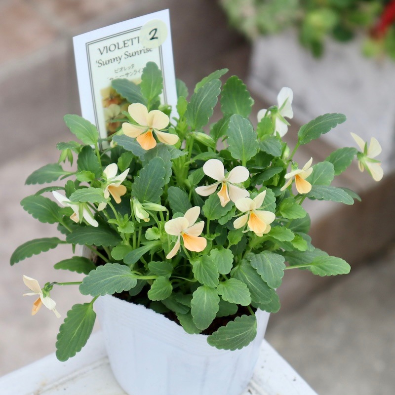 特別レア感のある色ばかりではないのですが、沢山咲く様子がたまらなく可愛いビオレッタ。春には絶対に「これ、良かったね~~」となります。笑 極小輪ビオラは他にもありますが、良株な上、株がコンパクト。 お行儀が良くて花付きも良好!! ですが、流通の少ないビオラです。 品種名はついていますが、多少の色幅・個体差はあります。 花弁の大きさは直径2㎝前後。 ポットの大きさと比較してイメージなさってくださいね。 また、花色というのは気温や日照条件によっても変わります。育てているうちに色の出方が変わることもよくあることです。(それがまた魅力) ご了承ください。