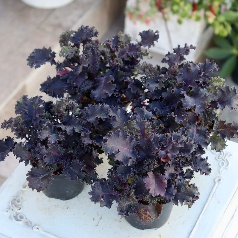 もともと、冬の寄せ植えやハンギングバスケットにオススメのシルバー系ハボタン。 ハボタンもケールも同様の使い道ですね。