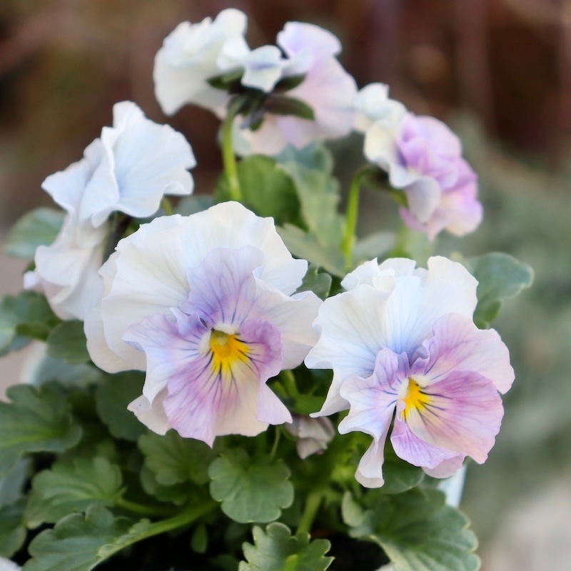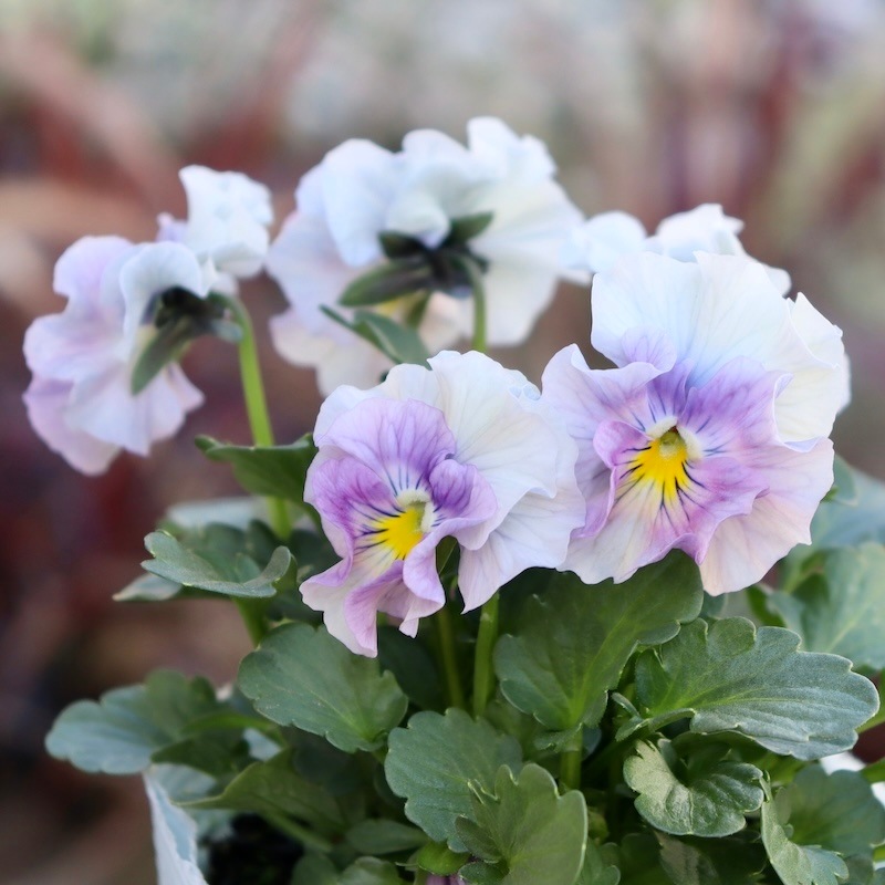 この「アイクルール」は咲き進みでどんどん色が変化しそうな複雑なカラーのビオラ。 「これは色分けは無理!!」と一目見て諦めがつきました。笑
