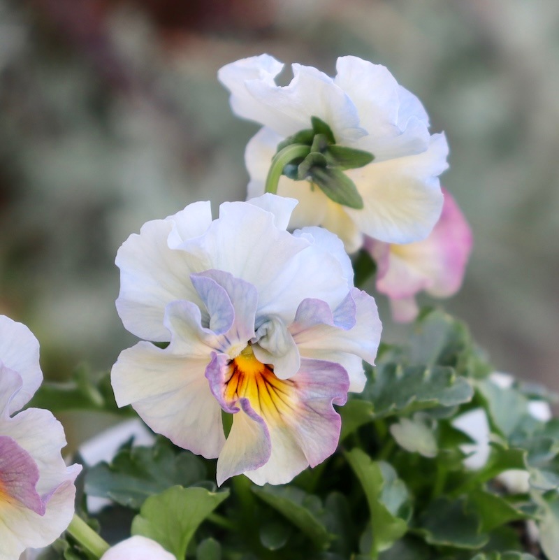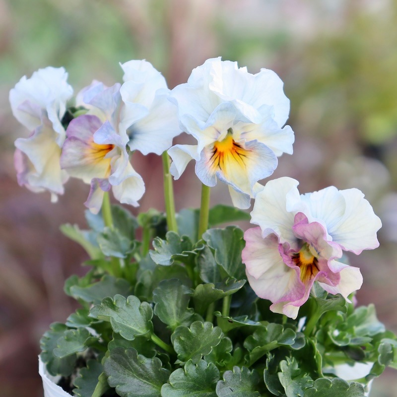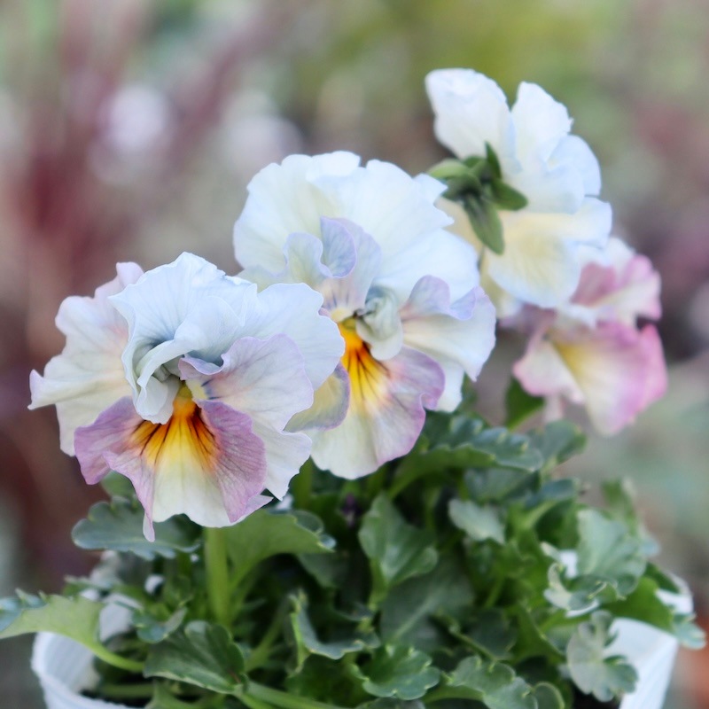 この「アイクルール」は咲き進みでどんどん色が変化しそうな複雑なカラーのビオラ。 「これは色分けは無理!!」と一目見て諦めがつきました。笑