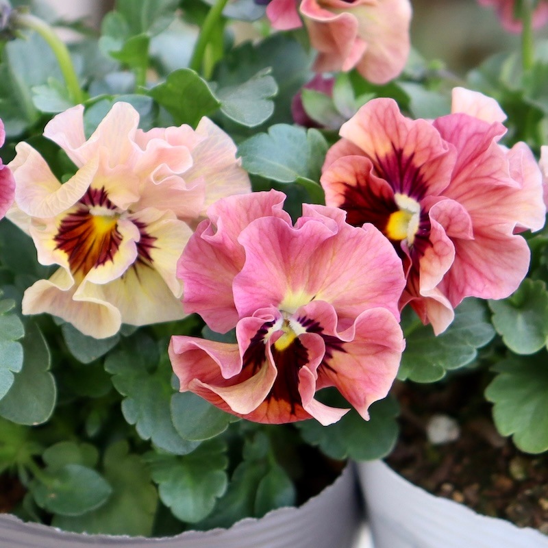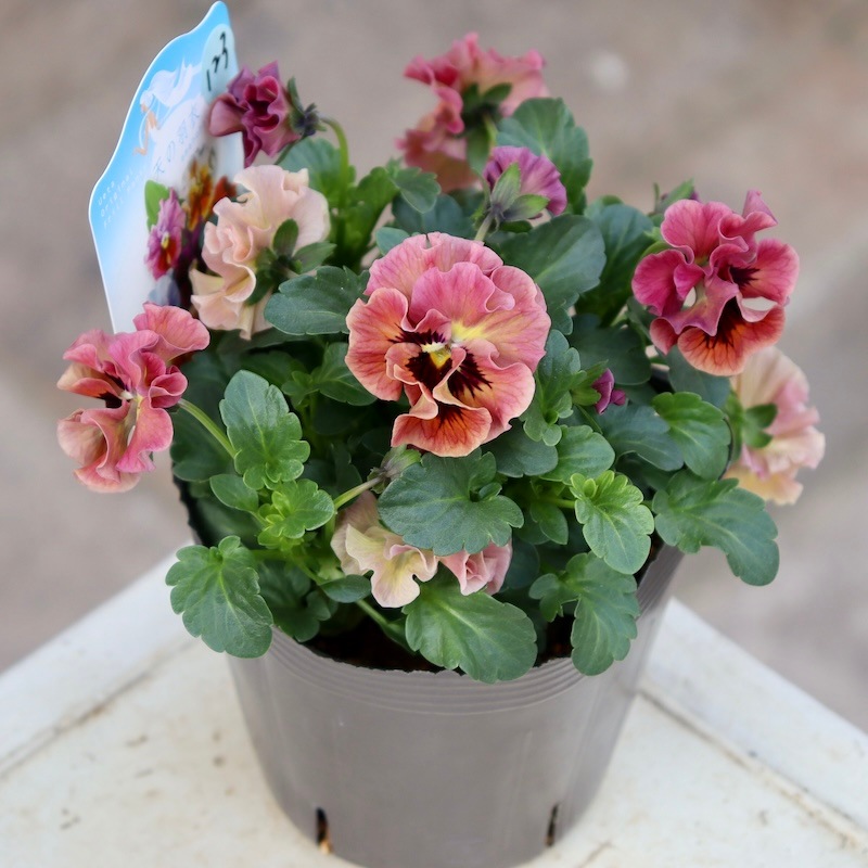 うえたさんがプロデュースされた何とも微妙な色合いが素敵なフリル咲きミニパンジーです。