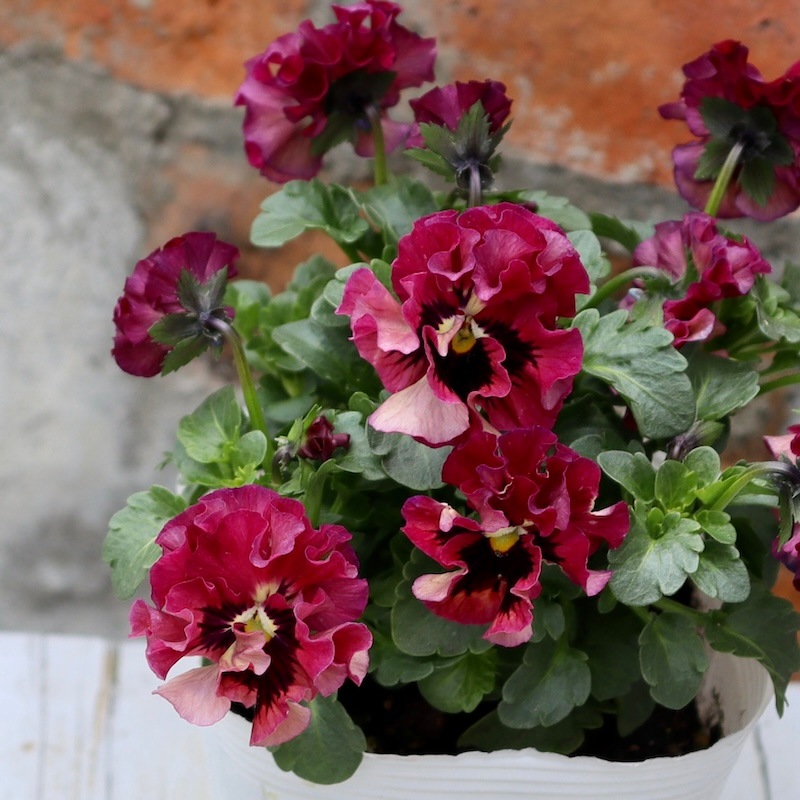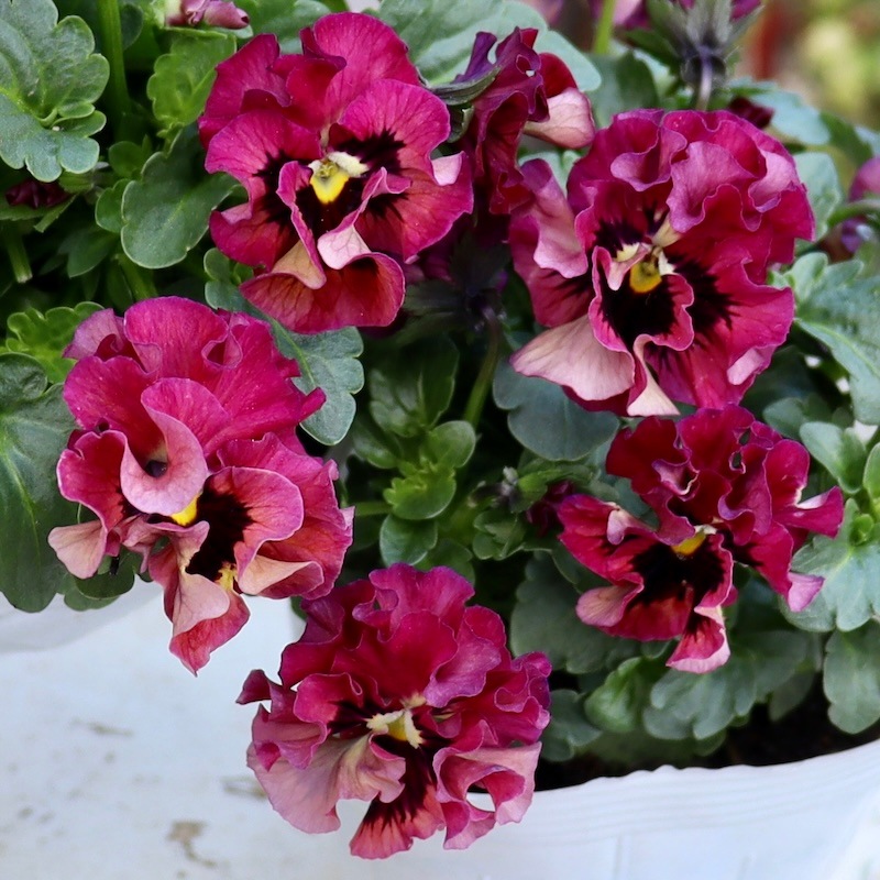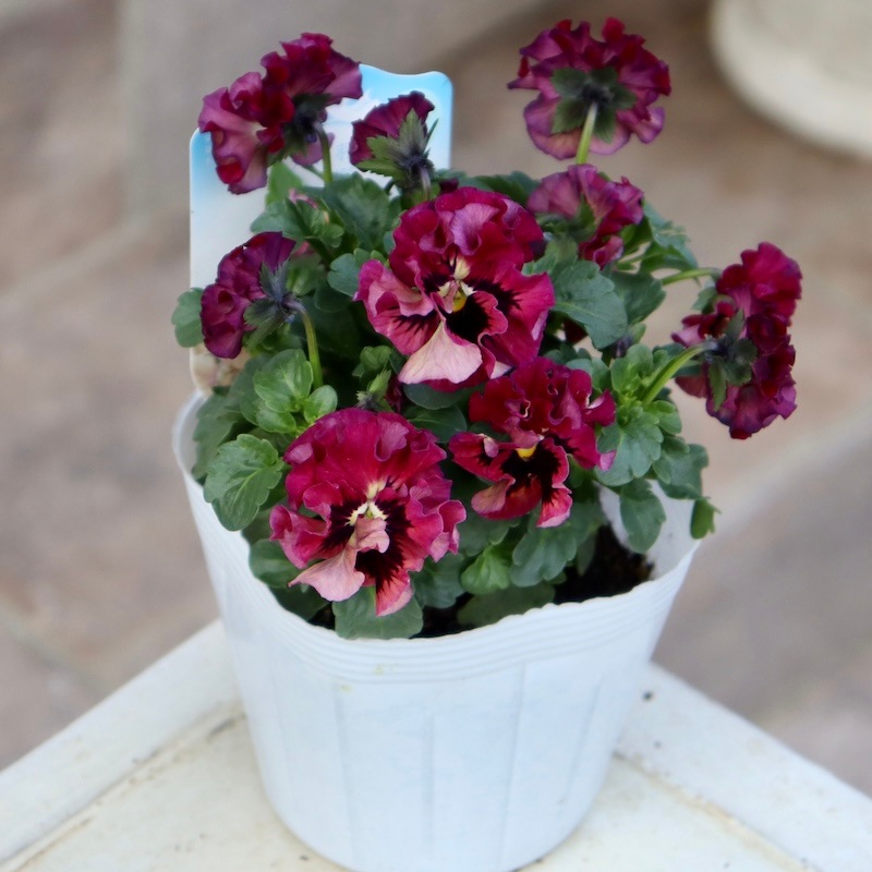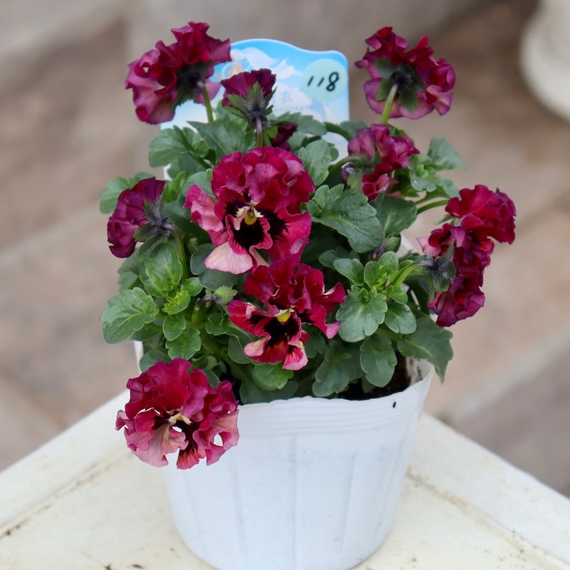 うえたさんがプロデュースされた何とも微妙な色合いが素敵なフリル咲きミニパンジーです。