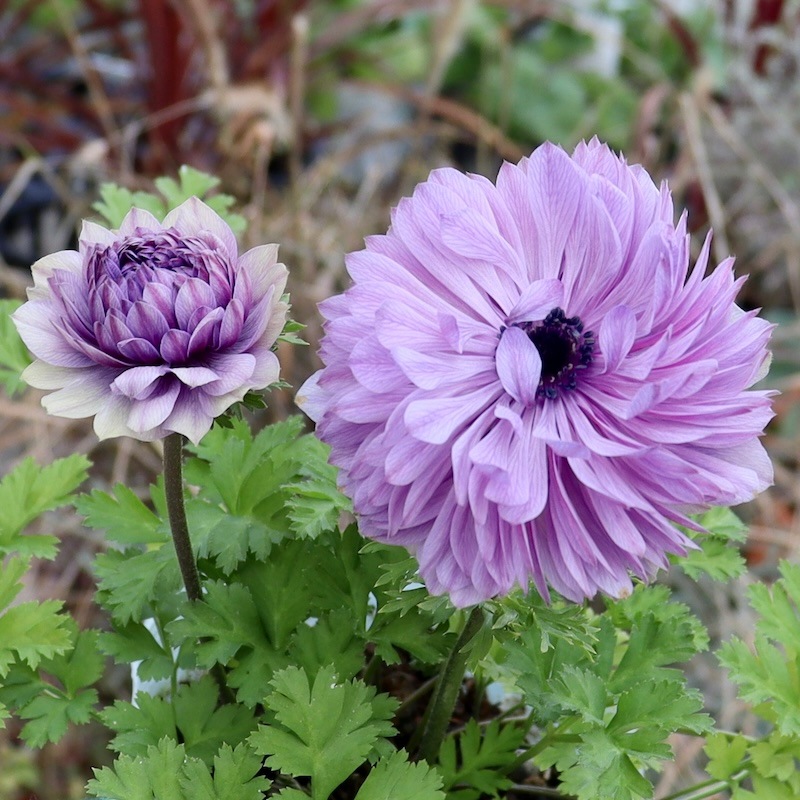 ************************* アネモネの豪華な八重咲き品種「凛々花(りりか)」 比較的コンパクトな品種ですが、すべて花穂が短いという訳ではないようです。