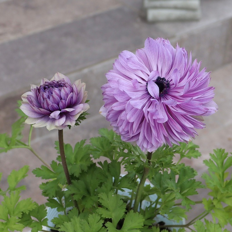 八重咲きのアネモネは直射日光に当たるとぱっ開くのですが、 夕方や曇りの日には閉じ気味になります。 それもまた美しかったりしますよね。 もちろん、咲き進みにより花色の変化もあります。 様々な表情の画像を撮影してみて「同じ品番なんだー」とびっくりすることも。