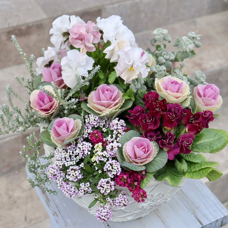 少しずつ大きくは育つものの、株はそれほど大きく広がらないので、寄せ植えにしても他の花を覆い隠してしまうようなこともありません。 全体のバランスをとりやすいので、リースや寄せ植え、ハンギングバスケット仕立てにもオススメの花です。 逆に、プランターや花壇に植えられる際には、株が大きく張らないことを考慮してぎゅっと窮屈気味に植えてあげると良いでしょう。