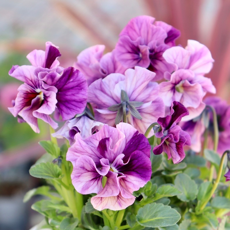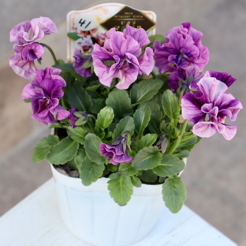 風散歩で扱うビオラの代表選手 「パピヨンワールド」をはじめ、キュートな色、フリフリの数々のパンジービオラを生み出された高知の植田さんのプレミアムな大人気品種です。