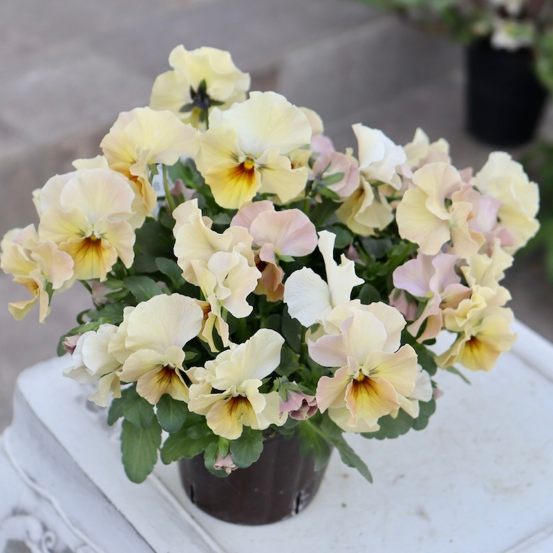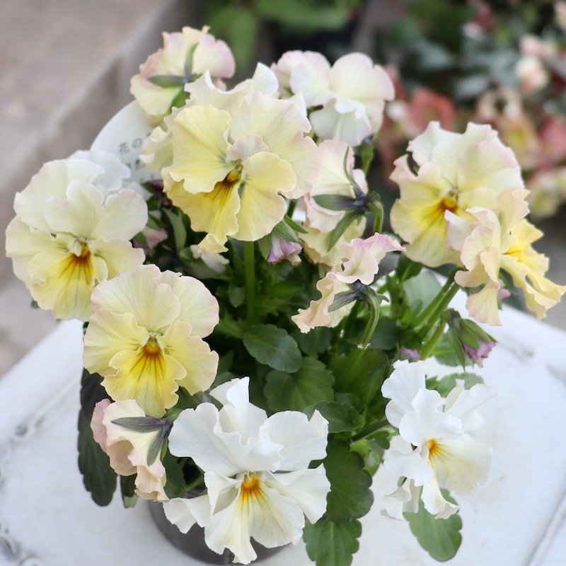 この雰囲気と優しいカラーバリエーションは春の寄せ植えにもピッタリです。 一度手にしてみたいと思われたら、是非お早めにご注文下さいね。 花径 4~5cmぐらい
