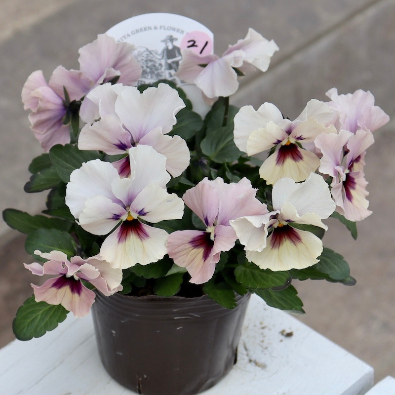 「可愛い」というより「美しい」が似合うような優雅な雰囲気の中輪パンジーです。