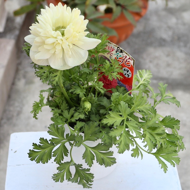 ************************* アネモネの豪華な八重咲き品種「凛々花(りりか)」 比較的コンパクトな品種ですが、すべて花穂が短いという訳ではないようです。