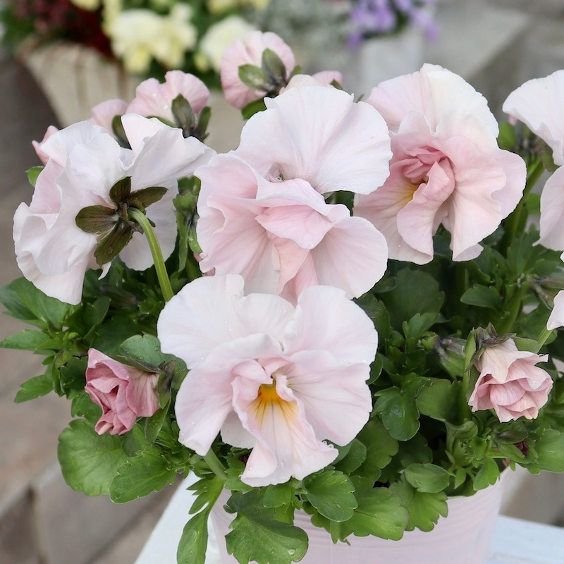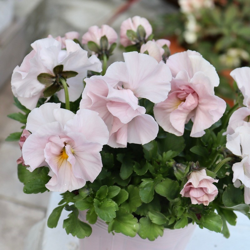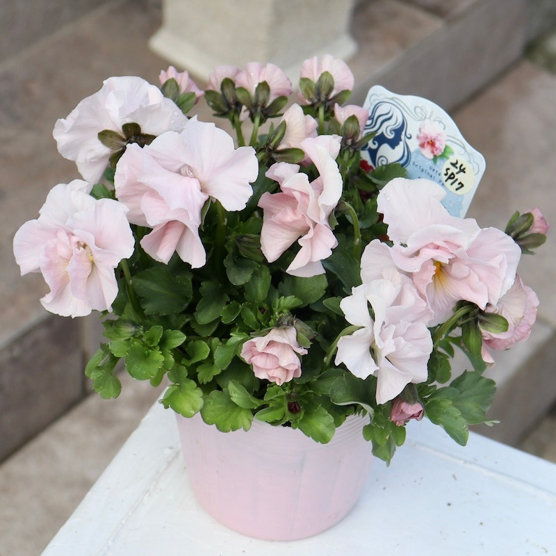 11月12月にお届けしたお客様には「例年より小さな株」に見えたかもしれませんね。 でも、これこそが良株なんですよ!! 決して徒長していないがっちり株を少し寒くなってきた11月下旬以降にもしっかり寒さにも当てながら育てて、今やっと複数開花!! これからはたくさんの花が途切れず咲きます♪ そのタイミングでこのようなとっても綺麗な、これから驚くほど綺麗に開花する苗をお届けします(^_−)−☆ きっと喜んで頂けるでしょうから。 どうぞこのまま植え替えて育てて下さいね。