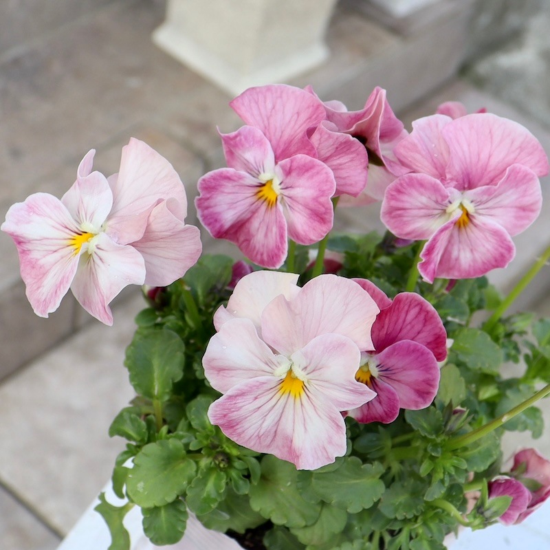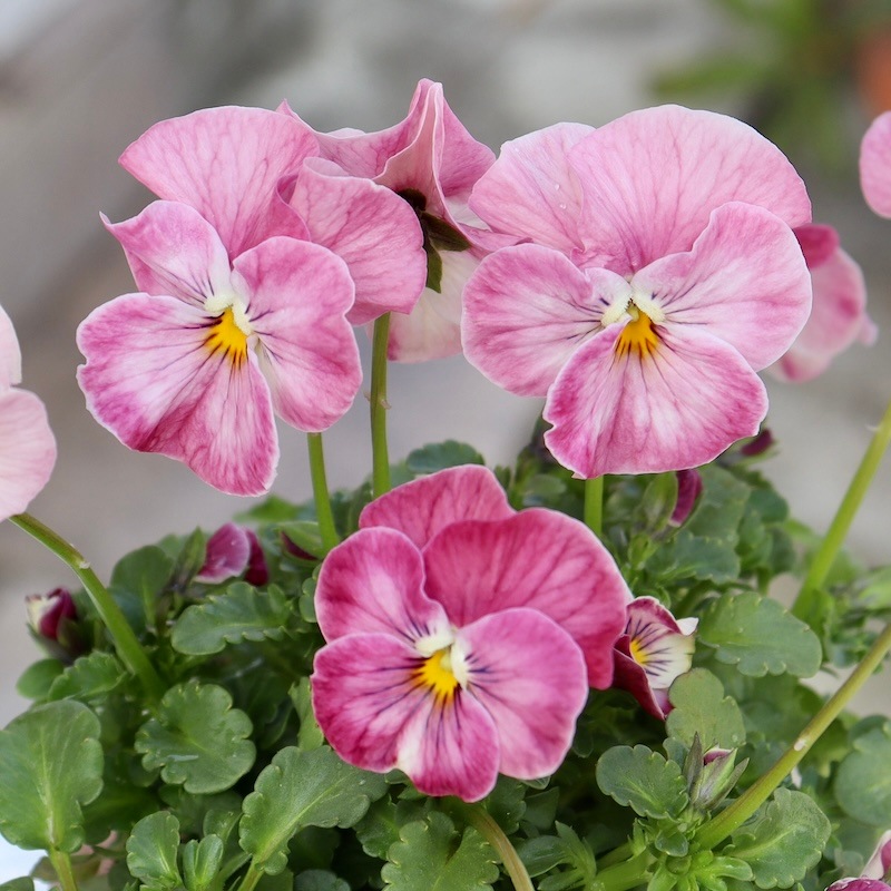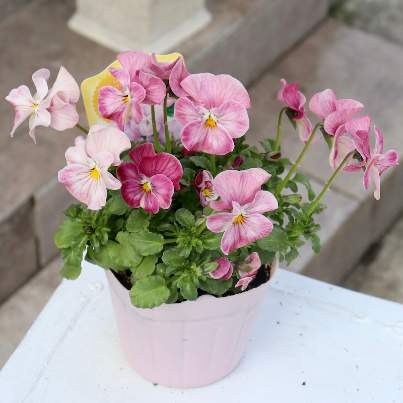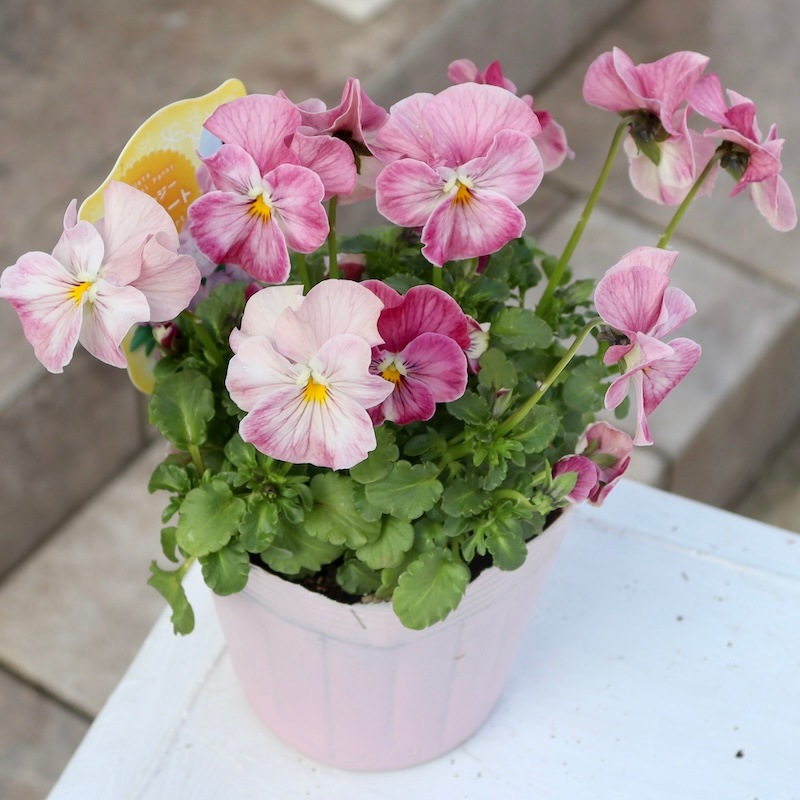 このラベル、間違っていないのかと目を疑うほど私好み(=風散歩のお客様好み)の可愛い花色。 ただのピンクではなくアプリコットピンクの濃淡なんです。 ビオラにすると少し大きめの丸弁で花弁もフリフリ♪ もしや、、、この品種はここから独立していくのかも??? ということは、これは貴重な試作品?なんて考えながら。。。 入荷できて本当にラッキーかも。 急いで帰ってきて、すぐに撮影。 画像を見て比較確認するも、昨シーズン大ヒットしたうえたビオラの「キューティーハート」でも「スィートラブ」でも「恋心」でもない。やっぱり違う品種でした~(当然といえば当然の話(笑)) 花径 約3.5~4cm