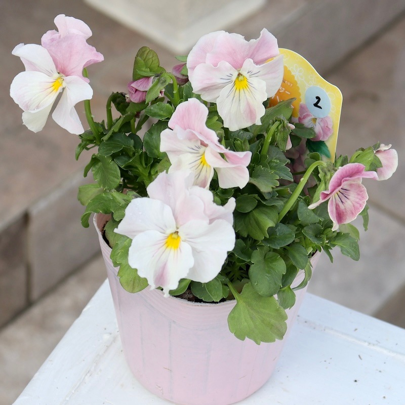 このラベル、間違っていないのかと目を疑うほど私好み(=風散歩のお客様好み)の可愛い花色。 ただのピンクではなくアプリコットピンクの濃淡なんです。 ビオラにすると少し大きめの丸弁で花弁もフリフリ♪ もしや、、、この品種はここから独立していくのかも??? ということは、これは貴重な試作品?なんて考えながら。。。 入荷できて本当にラッキーかも。 急いで帰ってきて、すぐに撮影。 画像を見て比較確認するも、昨シーズン大ヒットしたうえたビオラの「キューティーハート」でも「スィートラブ」でも「恋心」でもない。やっぱり違う品種でした~(当然といえば当然の話(笑)) 花径 約3.5~4cm