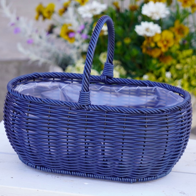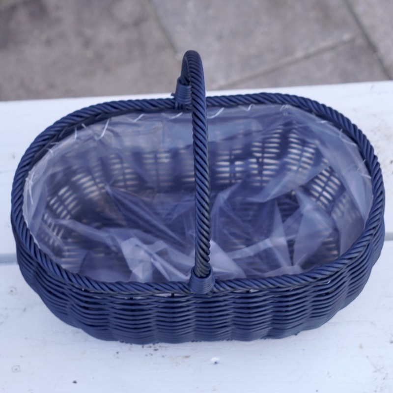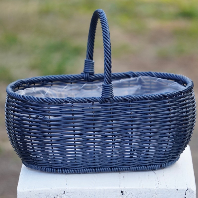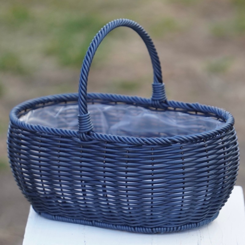 水で洗えるプラスチック製の籠タイプのハンドバスケット。
